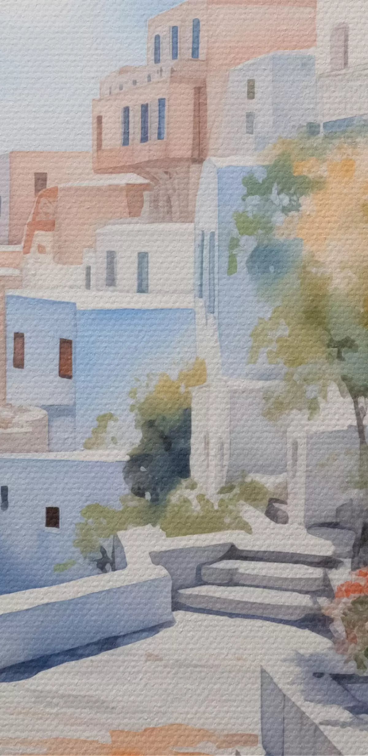 Tableau Maisons au bord de la mer imitation d'aquarelle Nr s43346