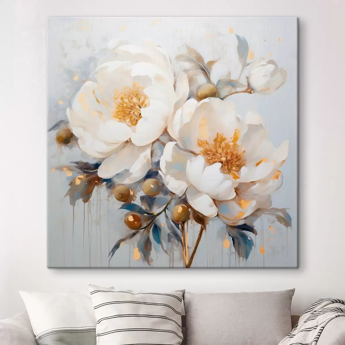 Trois types de matériaux peuvent être commandés : Economic Canvas - matériau dense et durable pour l'impression numérique, identique à la toile de peintre, surface imperméable, reproduction réaliste des détails, matériau à grain moyen. Premium Canvas - la texture ressemble à celle d'une toile de peintre (petits fils entrelacés). Reproduction douce et détaillée de l'image sur une surface mate. Eco-Premium - tissu 100 % coton de haute qualité. Grâce aux fibres naturelles de coton, le matériau est durable et résistant à l'usure. Excellente reproduction des couleurs et des détails.
