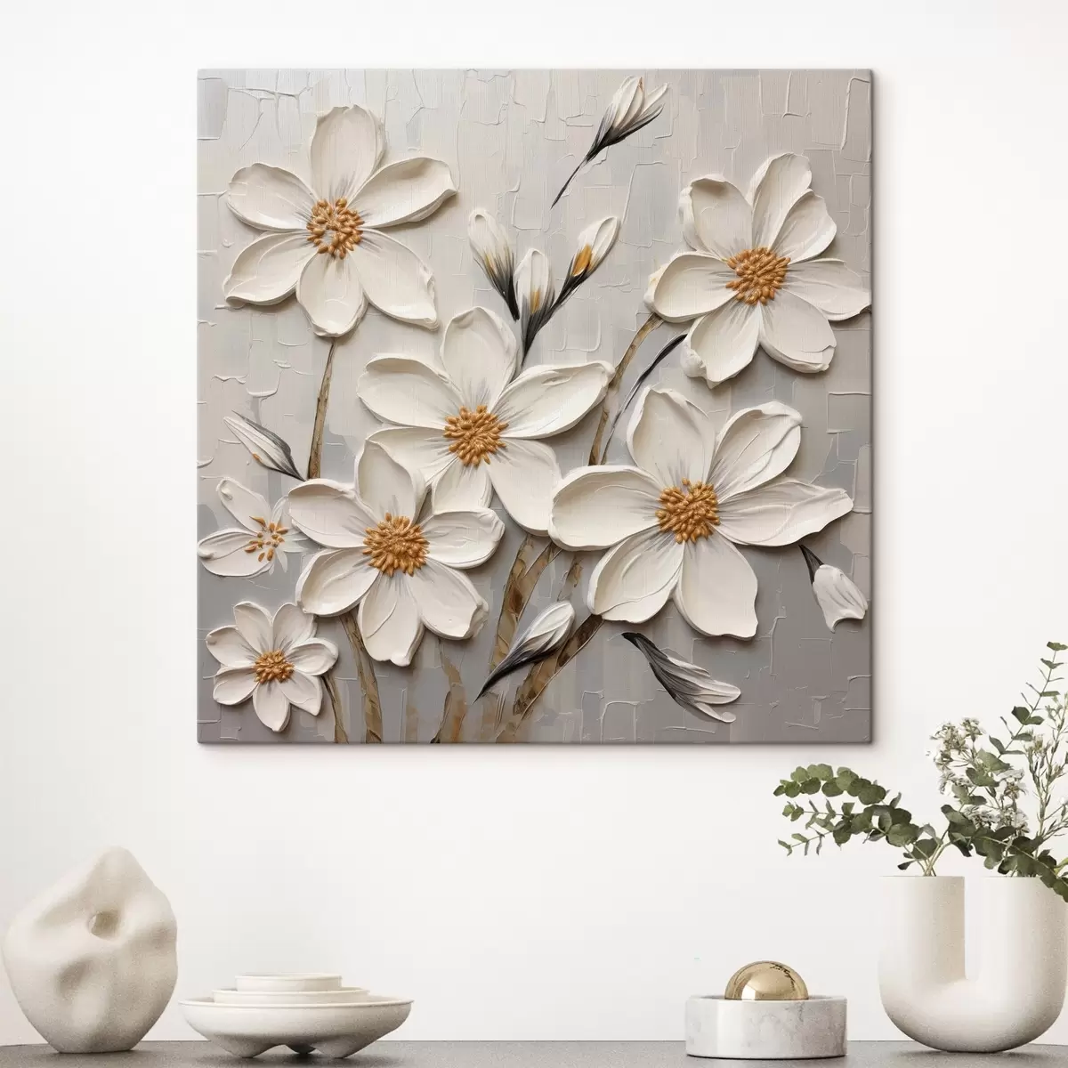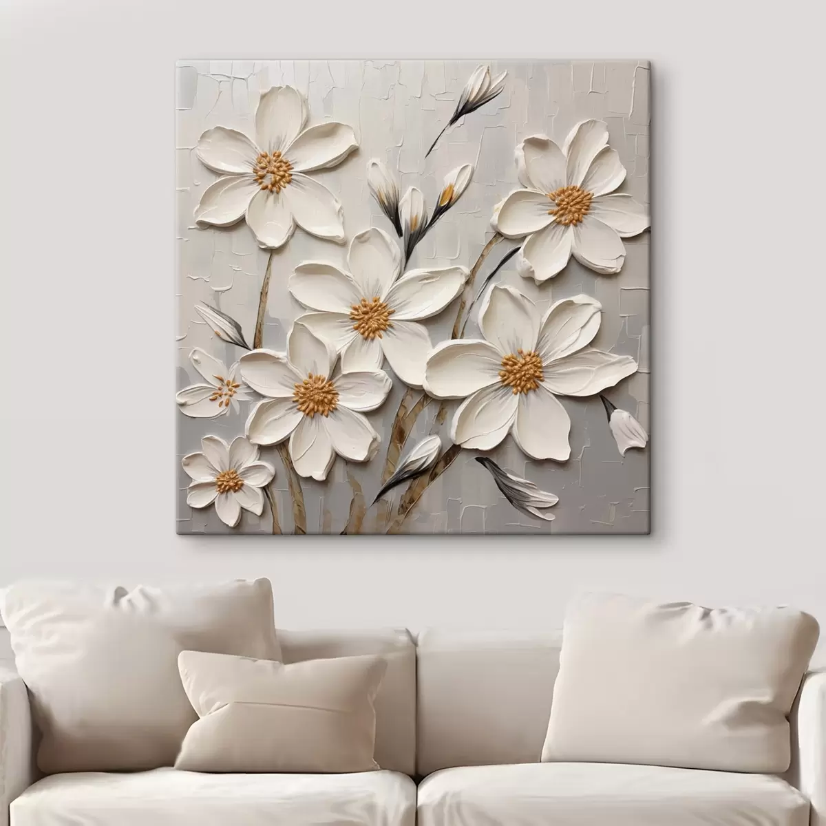 Tableau Fleurs blanches volumineuses dans un style de peinture avec de larges coups de pinceau s43366