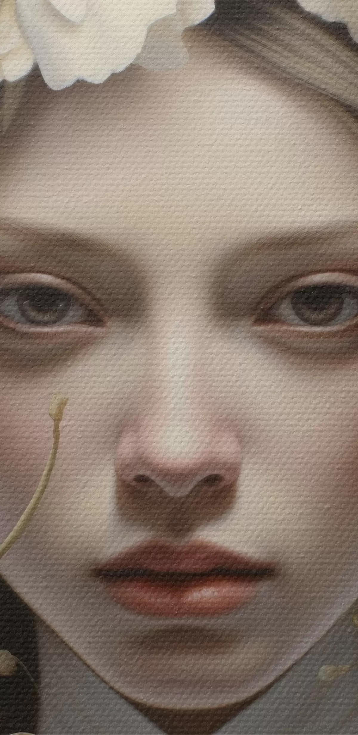 Tableau Fille dans des fleurs dans des tons calmes s43367