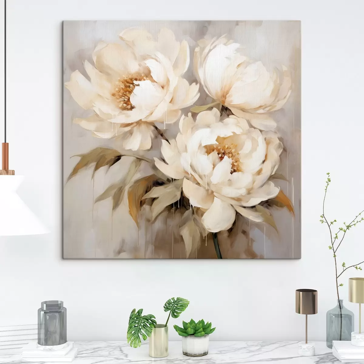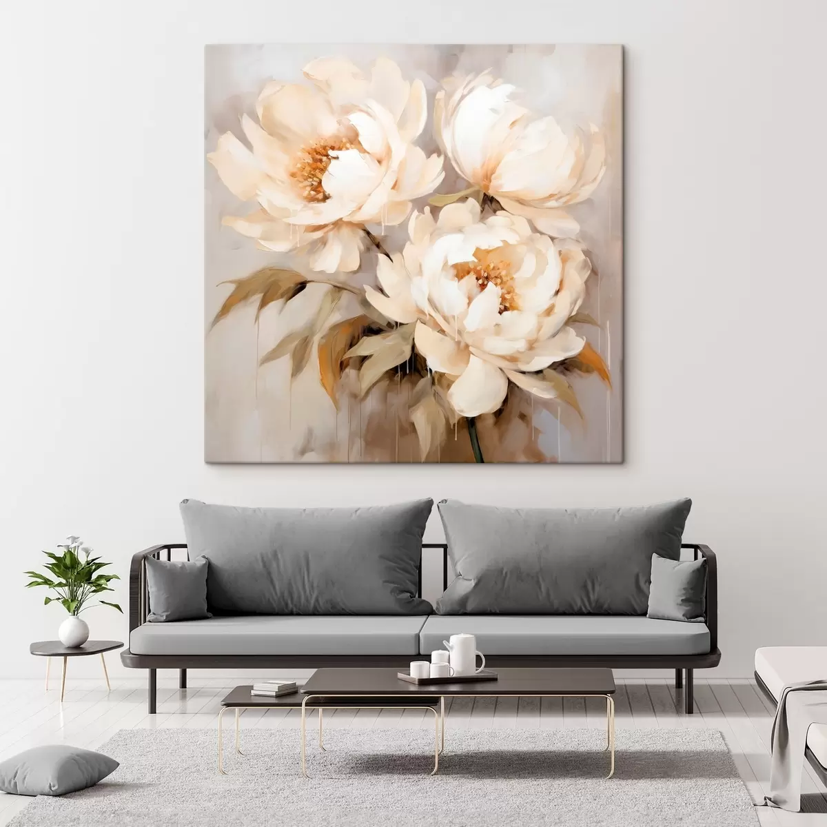 Tableau Pivoines délicates dans des tons neutres dans un style de peinture abstraite s43387