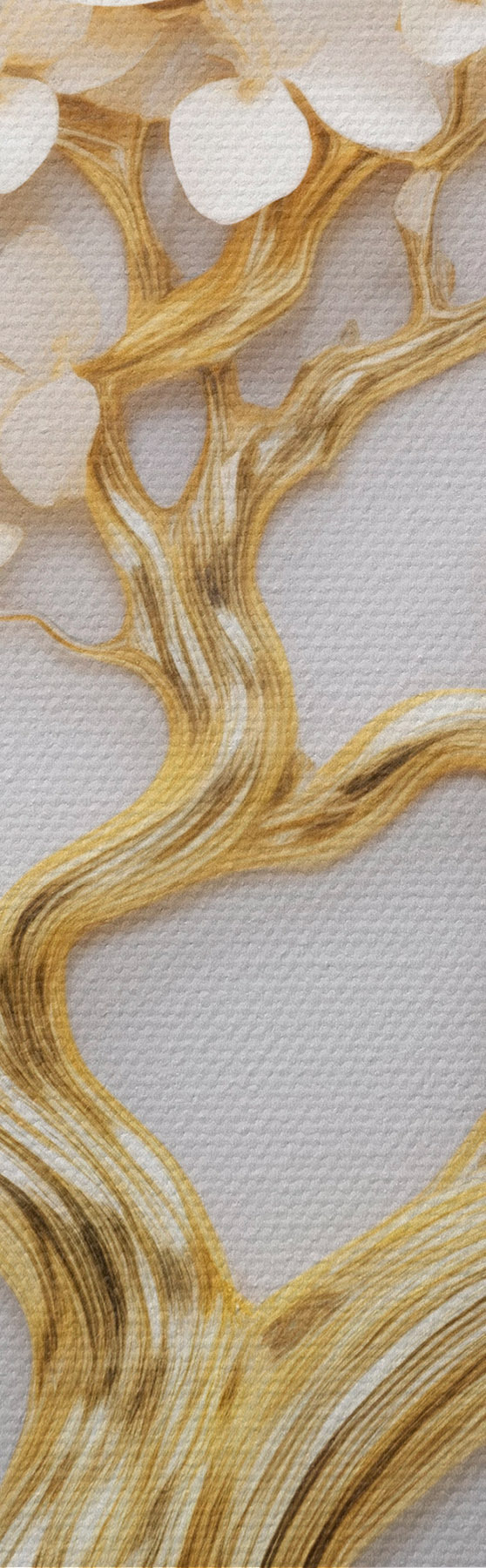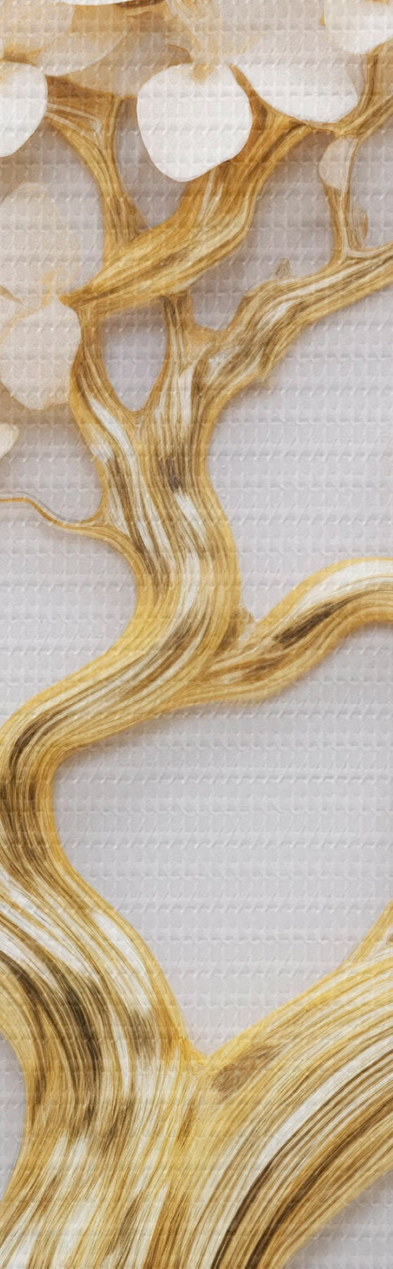 Tableau Arbre décoratif avec fleurs blanches, fond blanc, rochers blancs, détails complexes, art inspiré de la nature s43388
