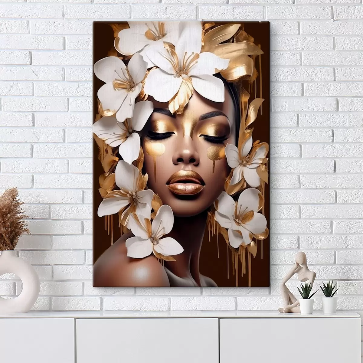 Tableau Portrait de femme avec des éléments floraux Nr s43417