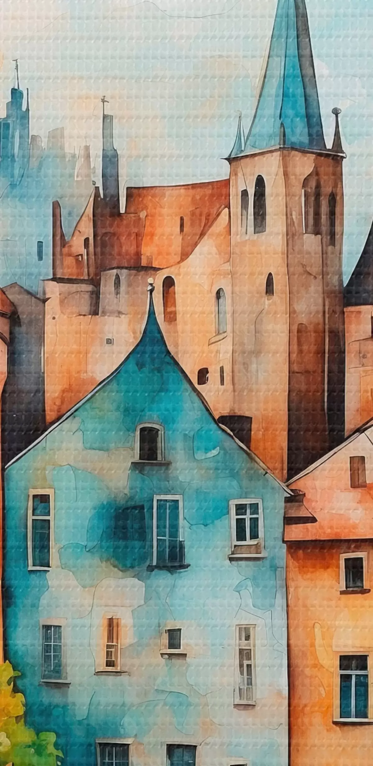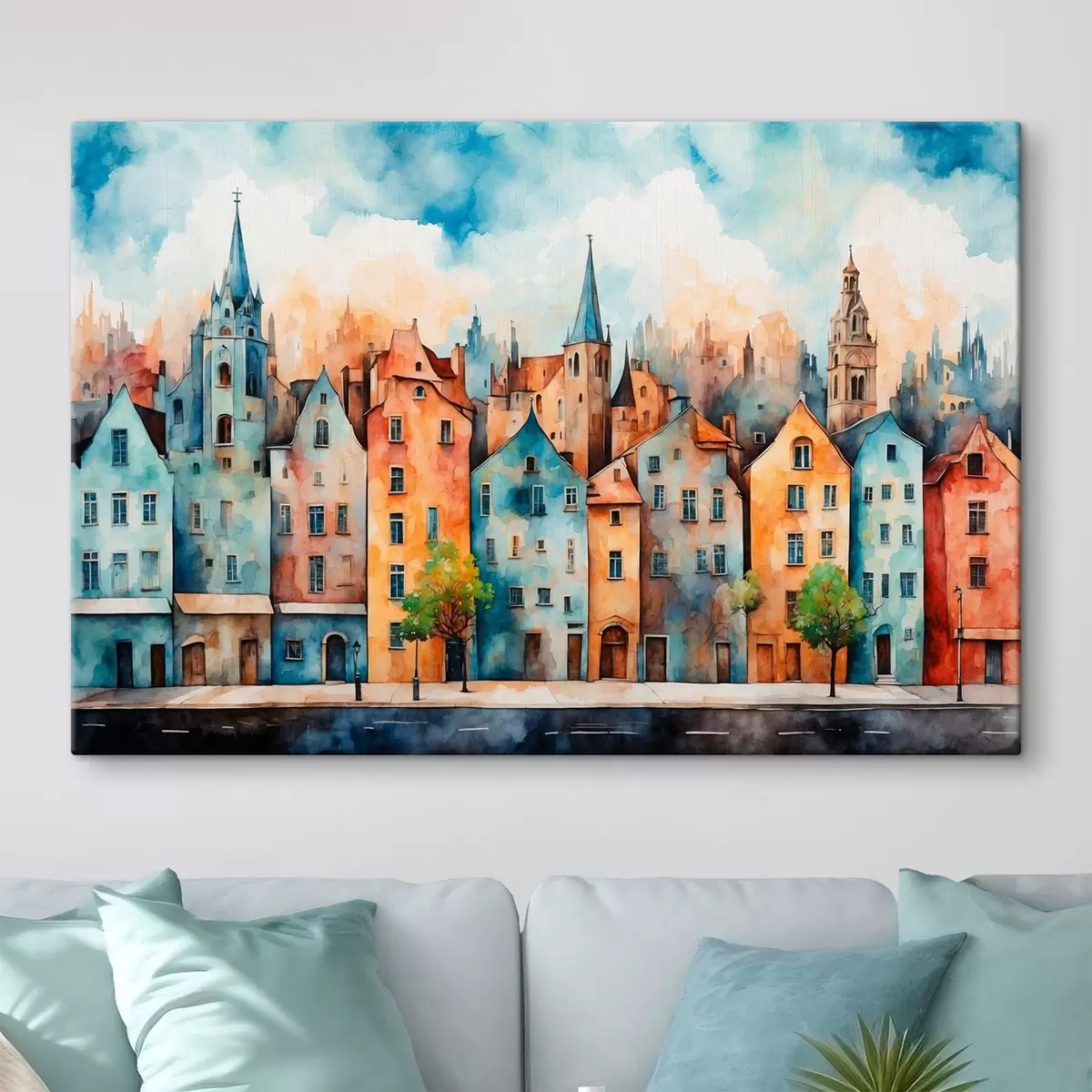Tableau Ville européenne en style peinture aquarelle Nr s43441