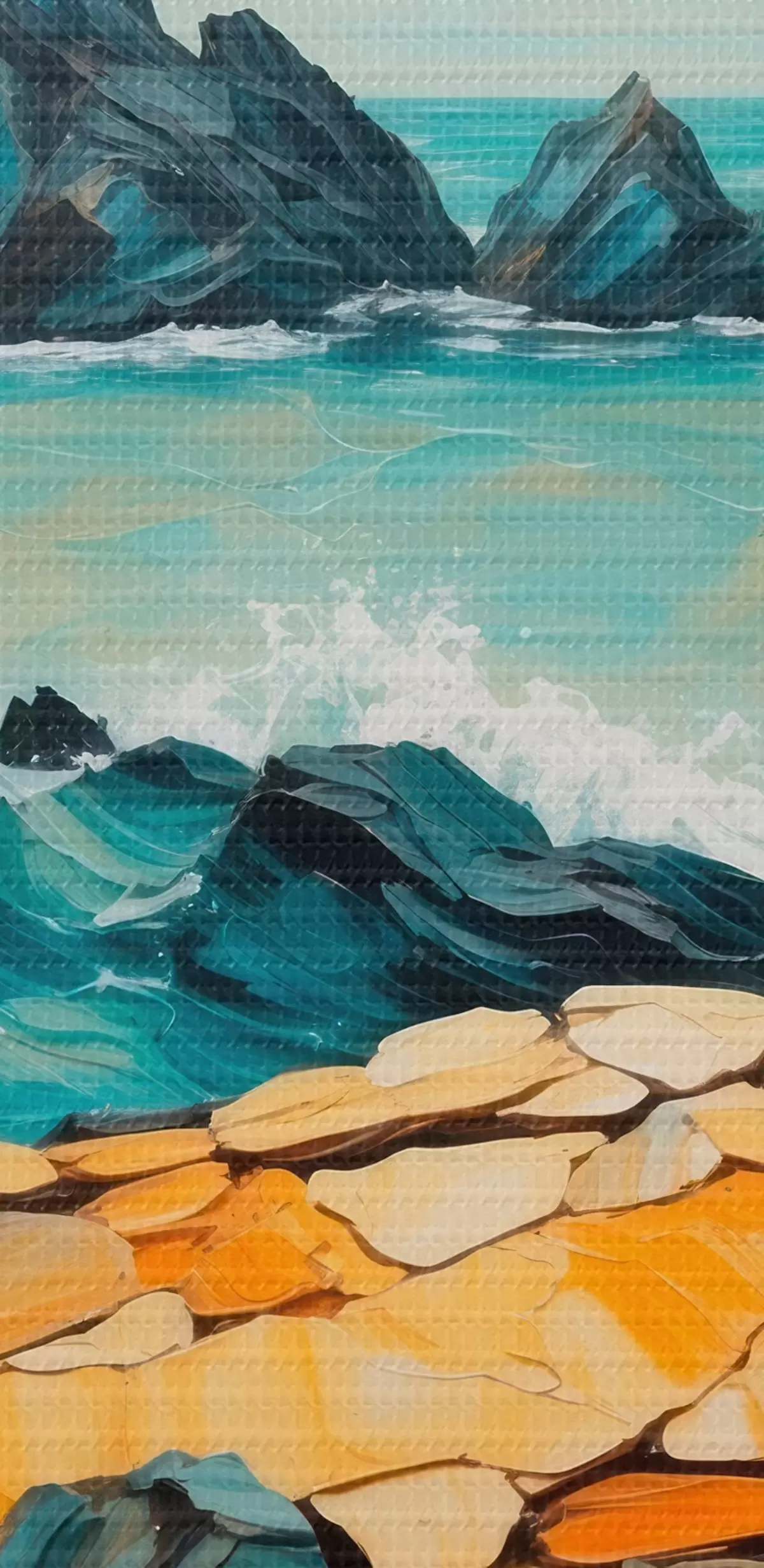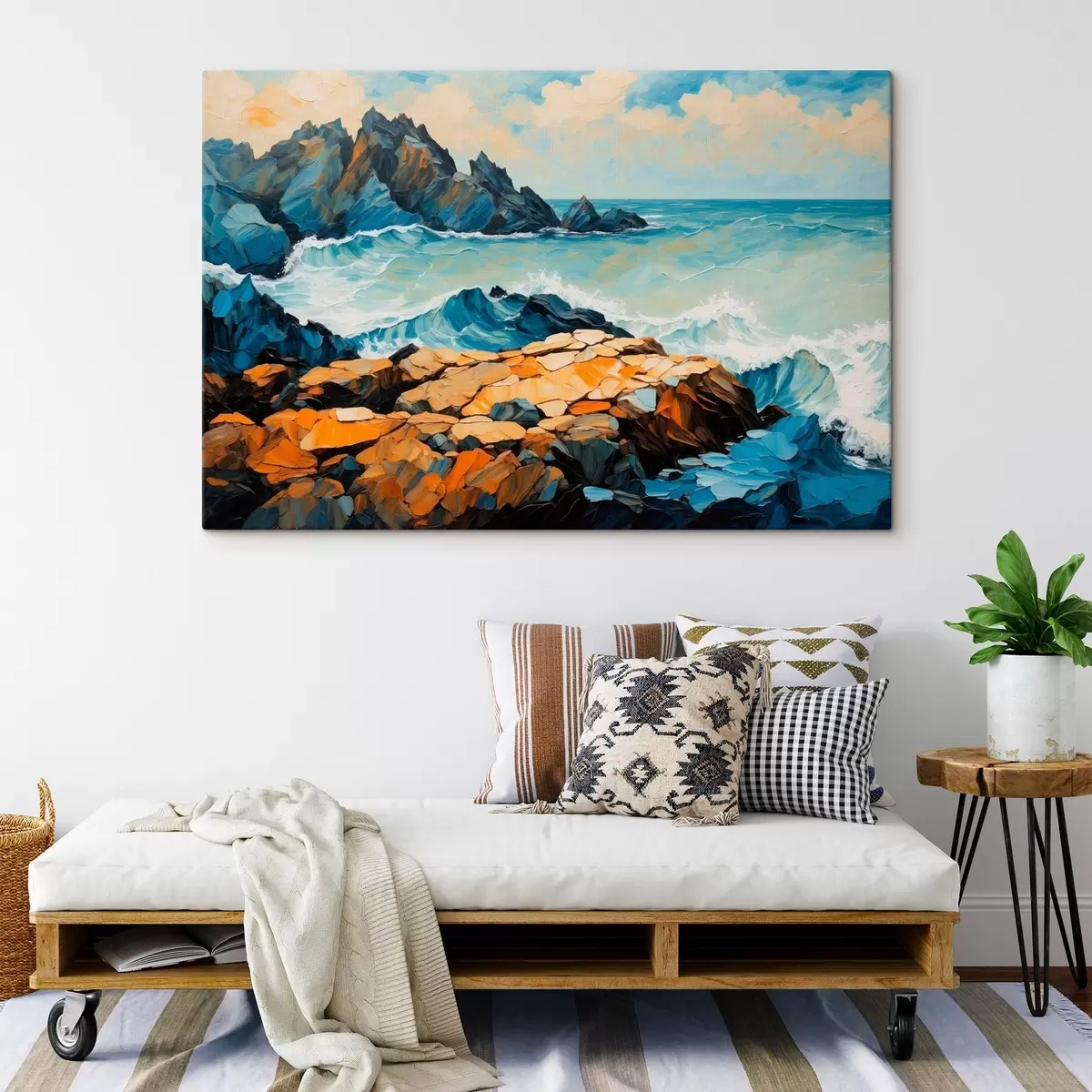 Tableau Les vagues s'écrasent sur les rochers s43458