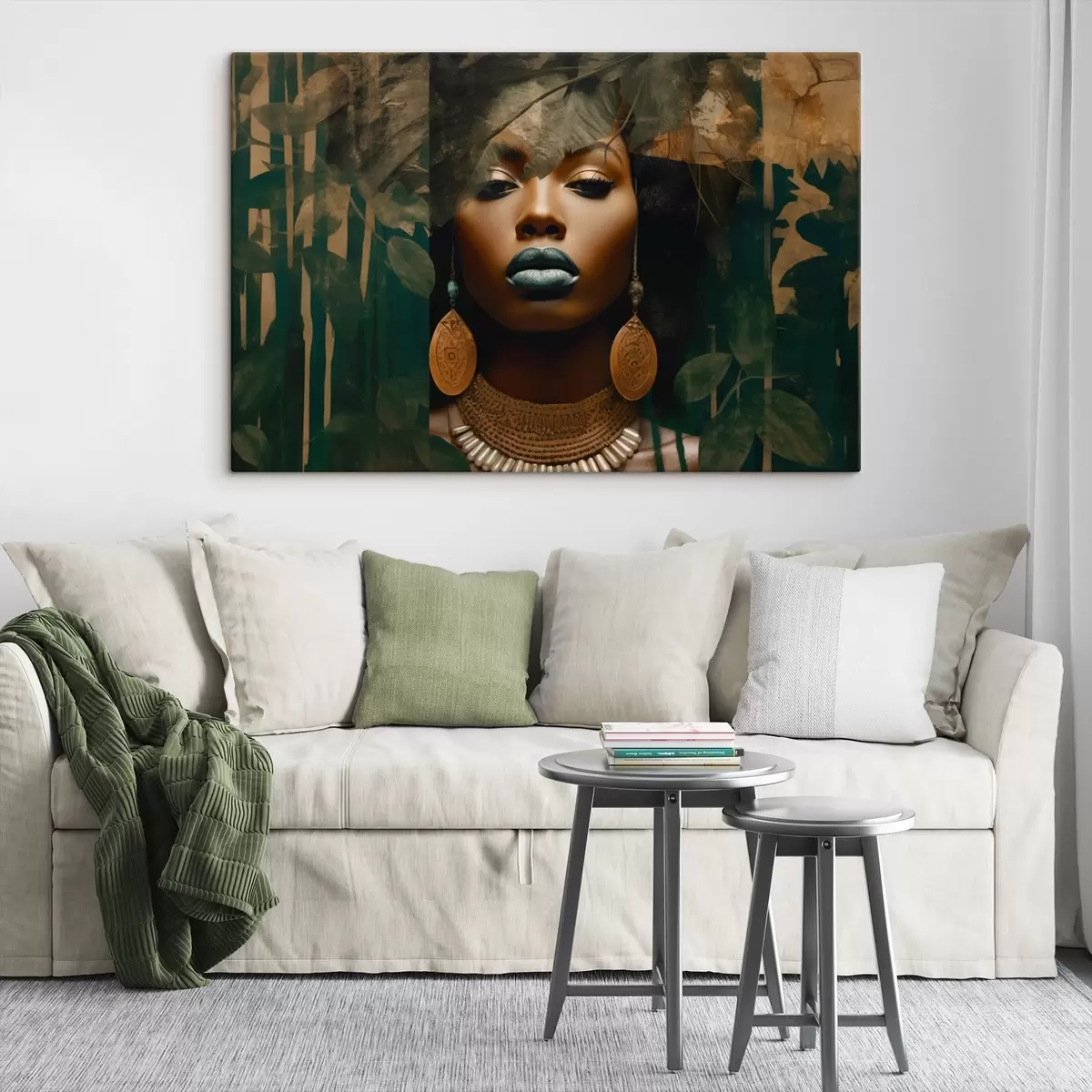 Tableau Visage de fille sur fond de forêt abstraite s43466