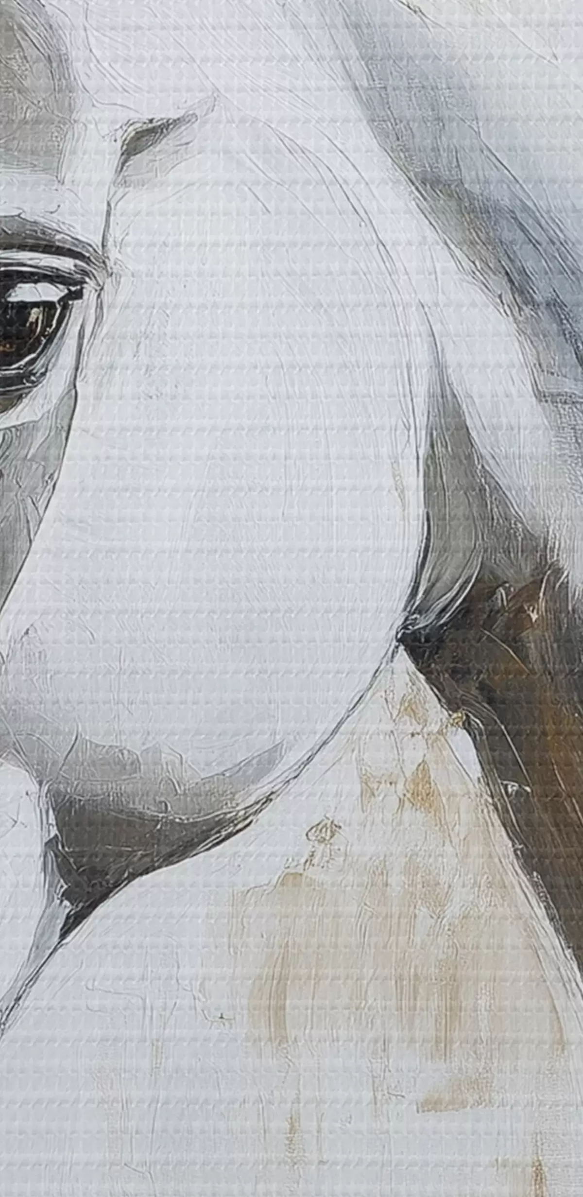 Tableau Cheval blanc, dessin à l'huile, animaux, coups de pinceau vifs s43497