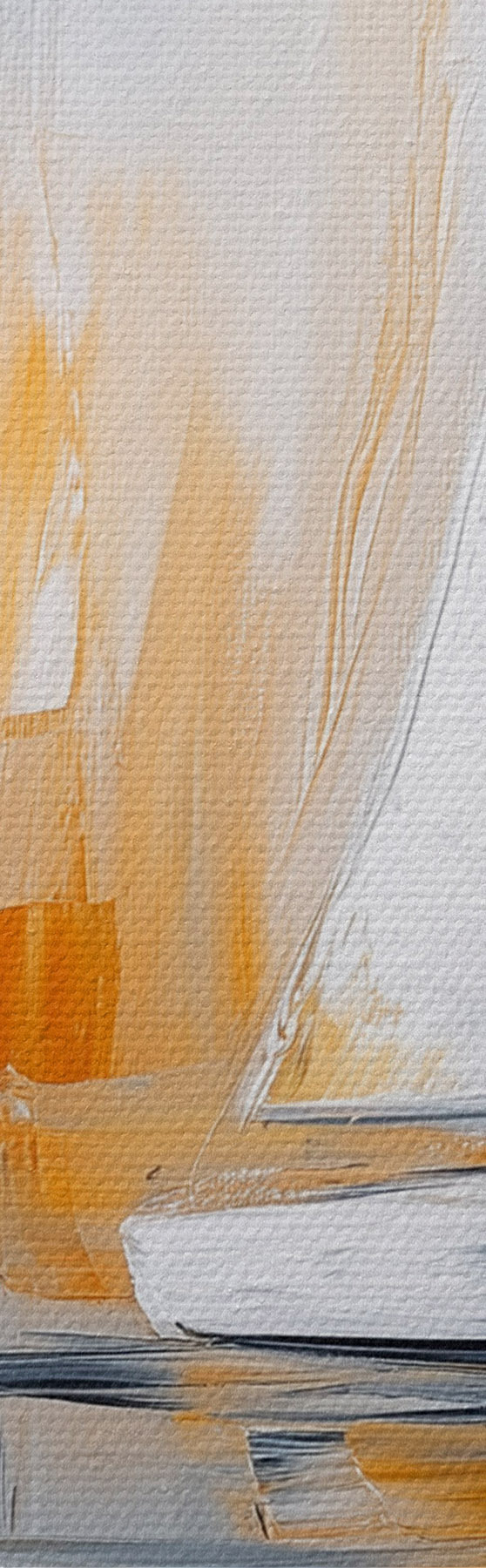 Tableau Voiliers, abstraction, dessin à l'acrylique, gris et orange s43499