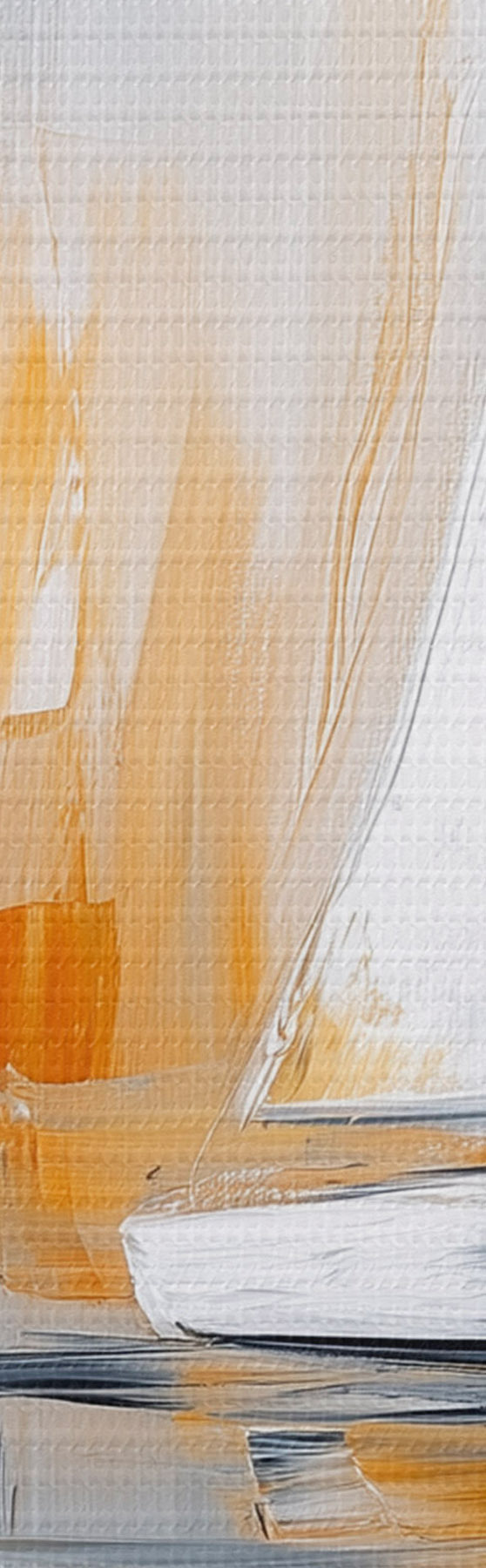 Tableau Voiliers, abstraction, dessin à l'acrylique, gris et orange Nr s43499