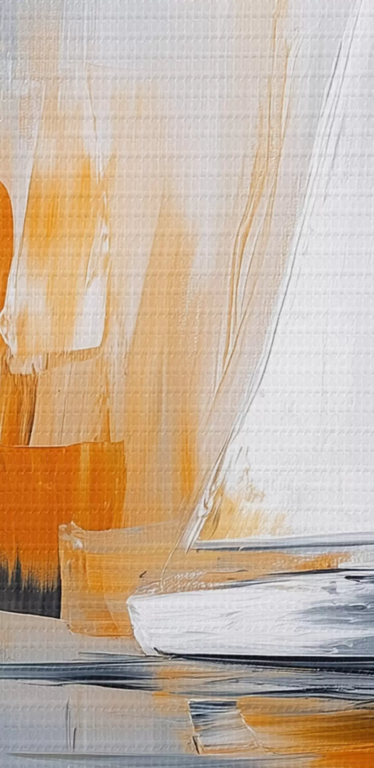 Tableau Voiliers, abstraction, dessin à l'acrylique, gris et orange s43499