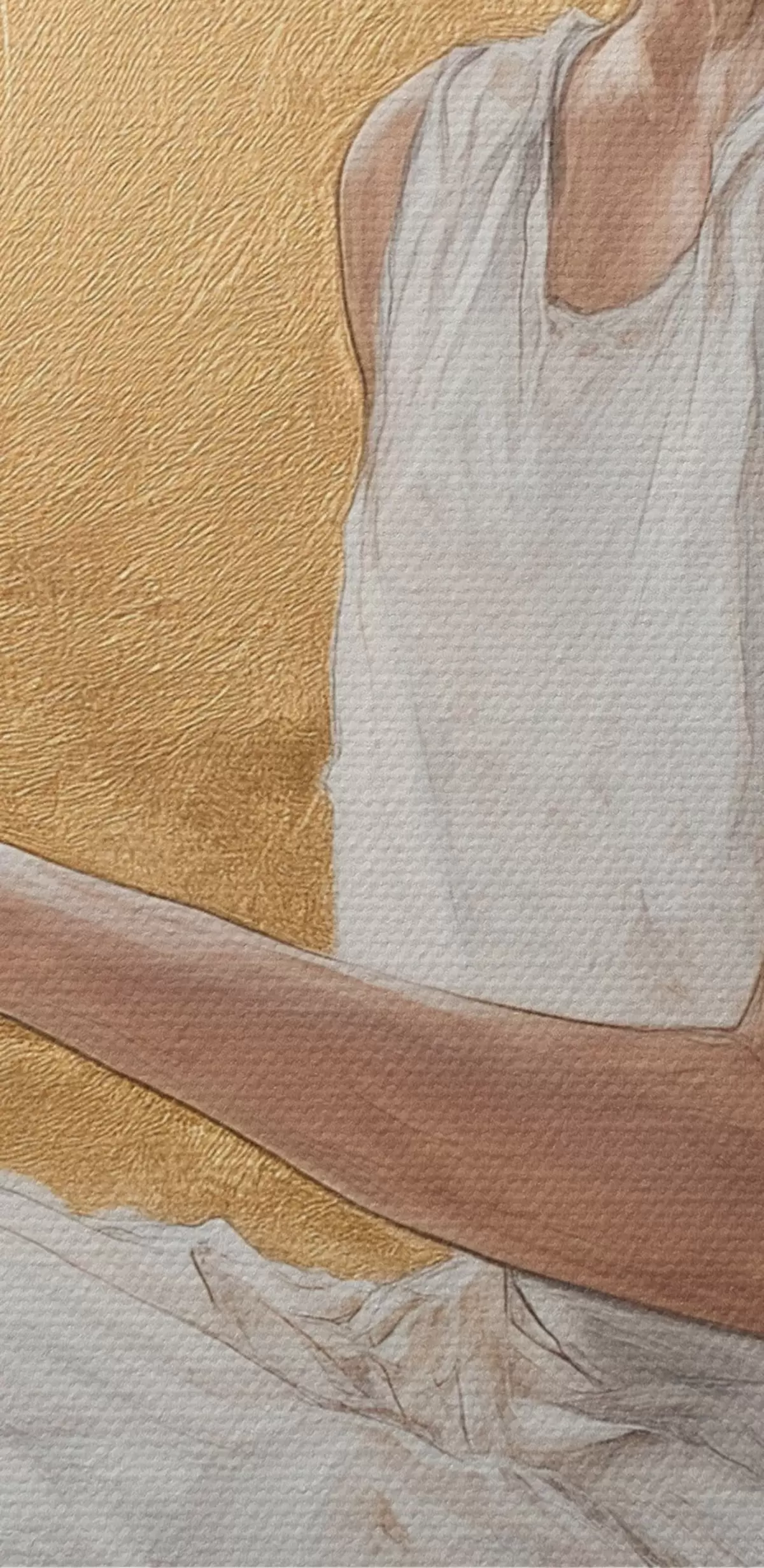 Pour tendre la toile sur des châssis sans endommager l'image, nous utilisons une image miroir.