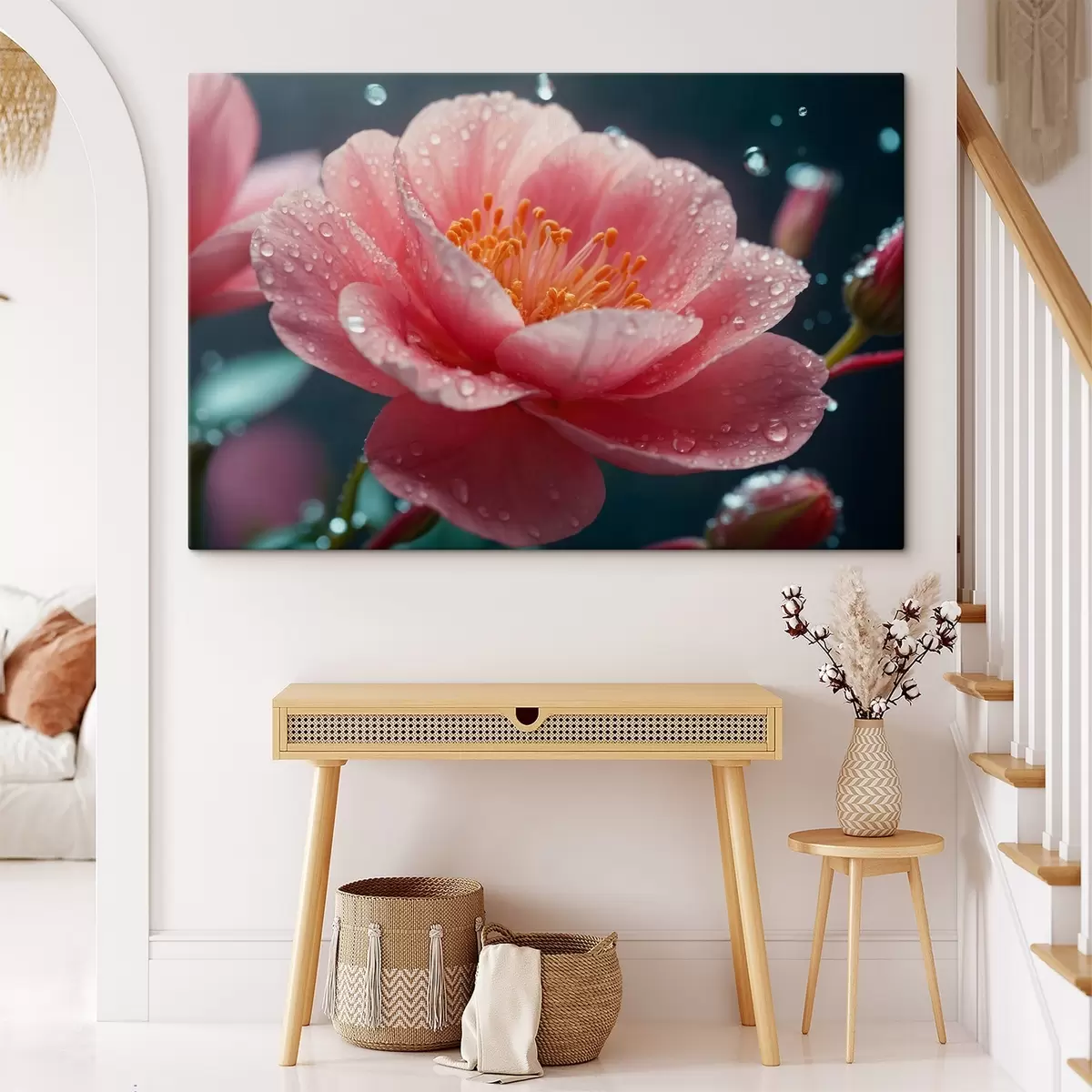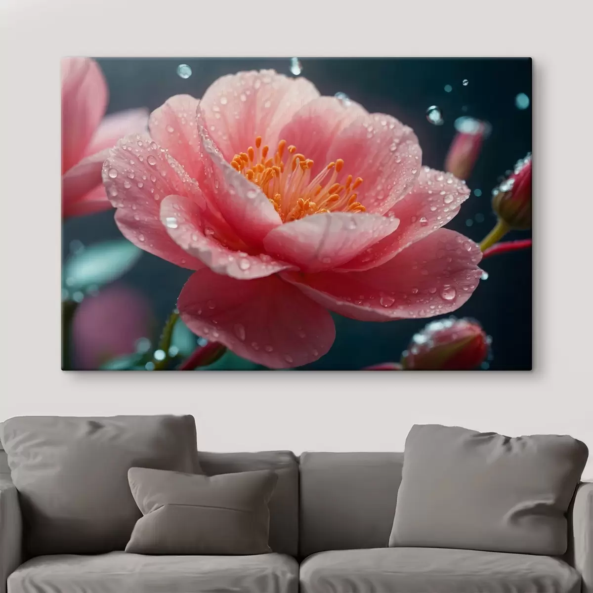 Tableau Fleur hyperréaliste avec gouttes de rosée s43873