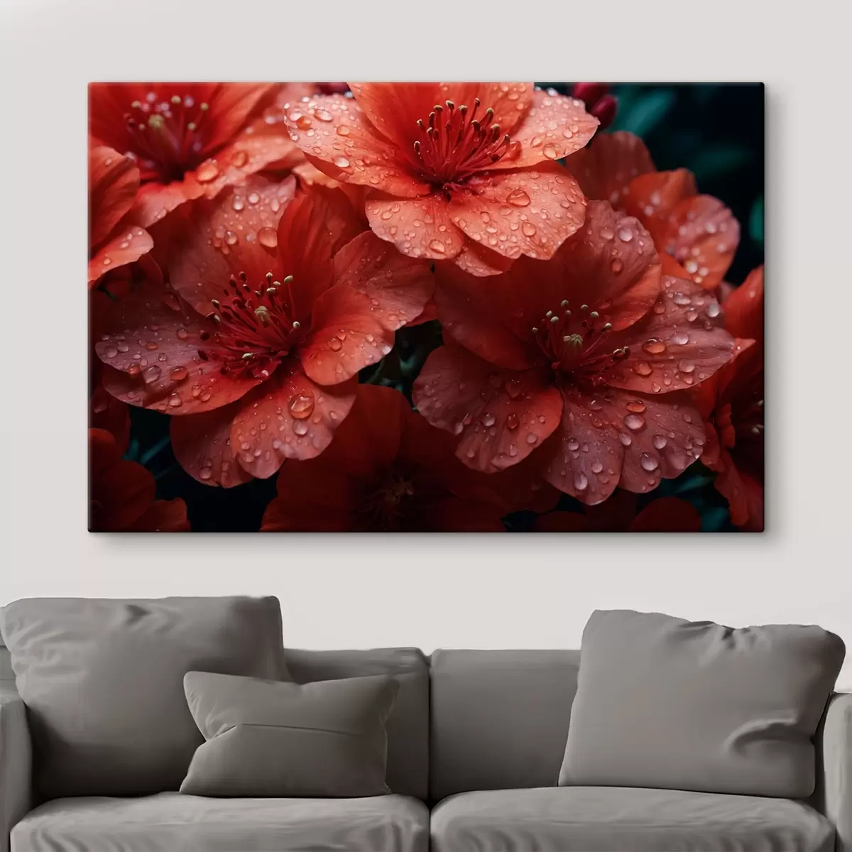 Tableau Fleurs rouges avec gouttes de rosée Nr s43878