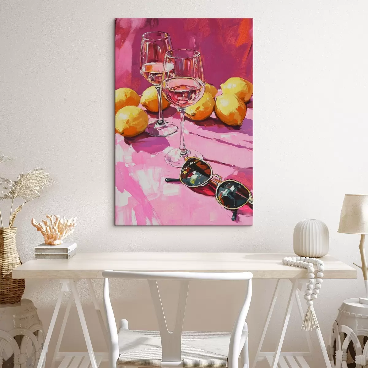 Tableau Abstraction à l'huile avec des verres de boisson, des citrons et des lunettes de soleil Nr s43884