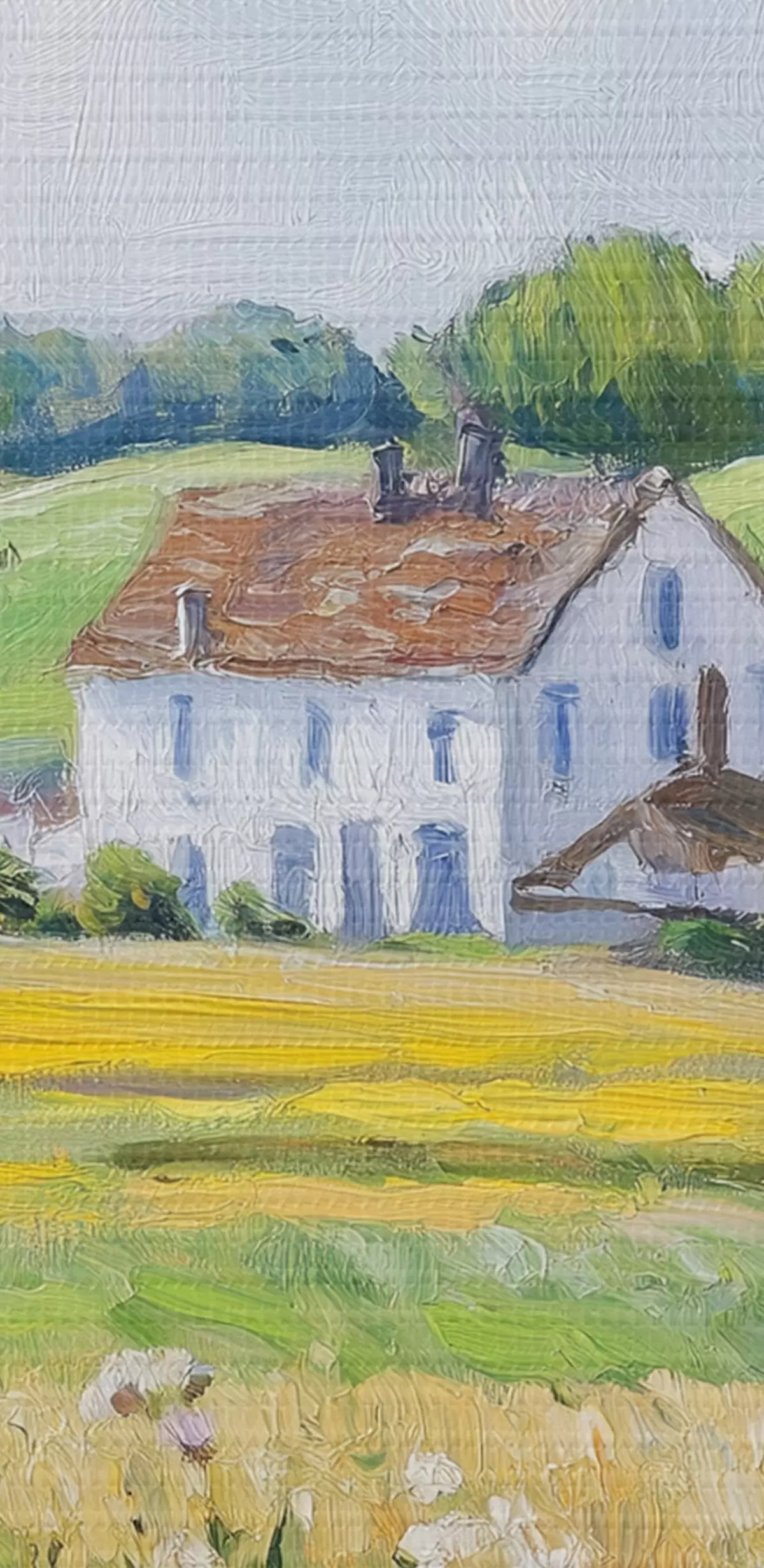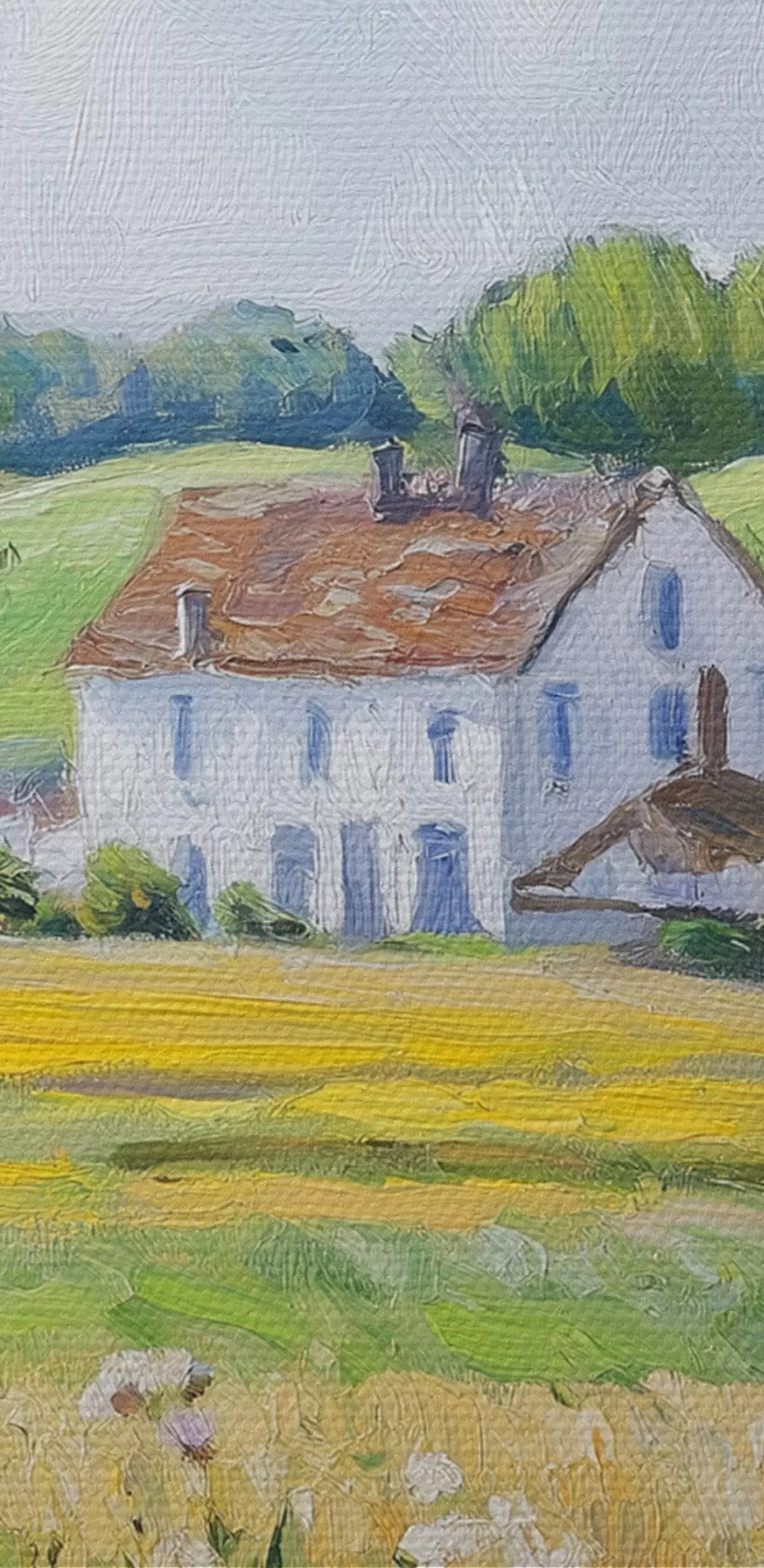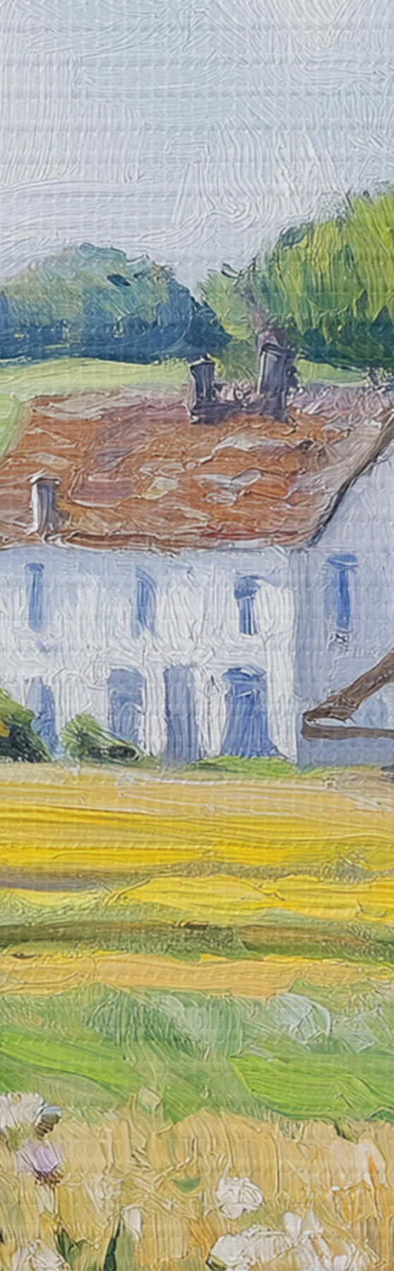 Tableau Paysages de village dans la fenêtre en bois, fleurs, champs, style huile, maison de ferme Nr s43888