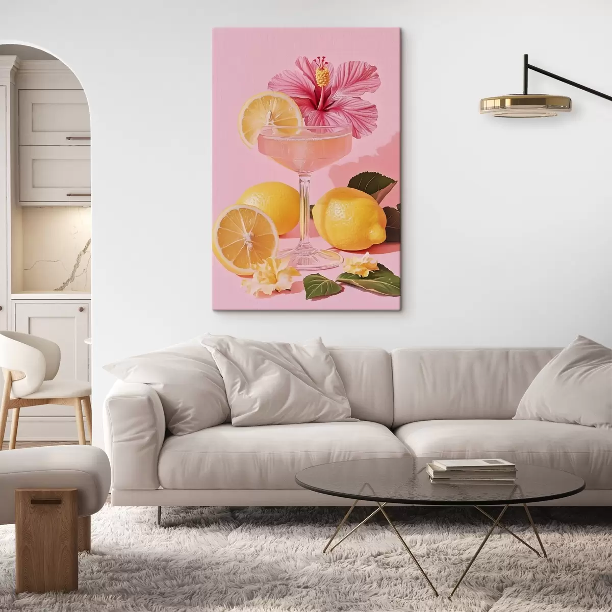 Tableau Cocktail rose avec fleur d'hibiscus, citrons, réalisme Nr s43893