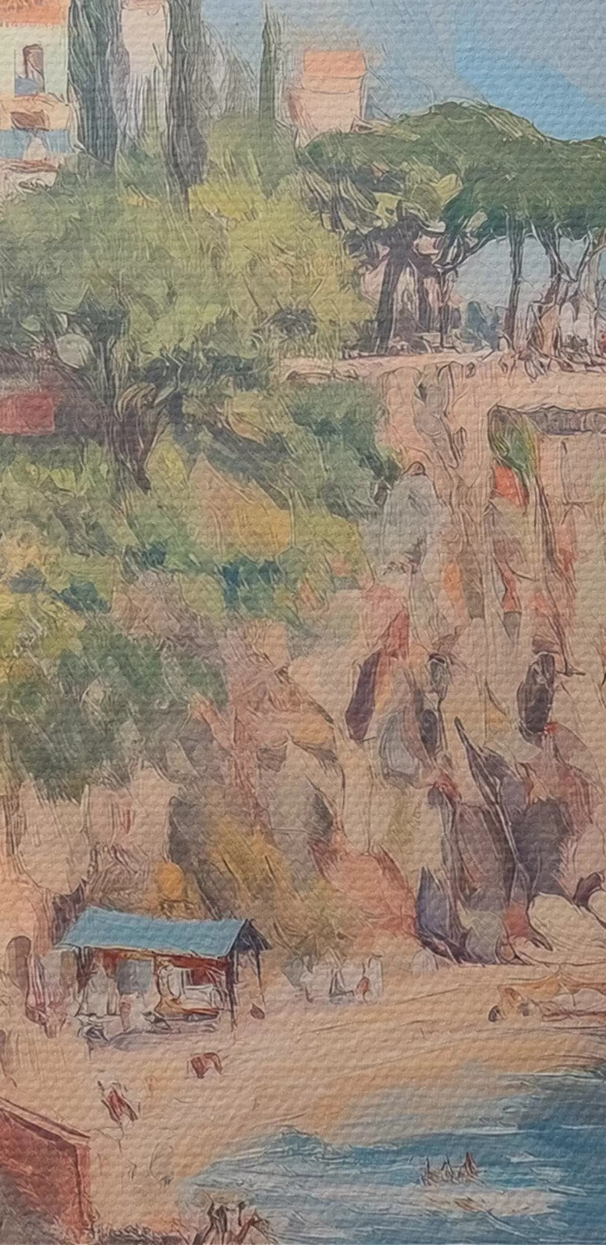 Le tableau peut être accroché immédiatement après réception. Le tableau est tendu sur un châssis en bois de 2 cm de large.