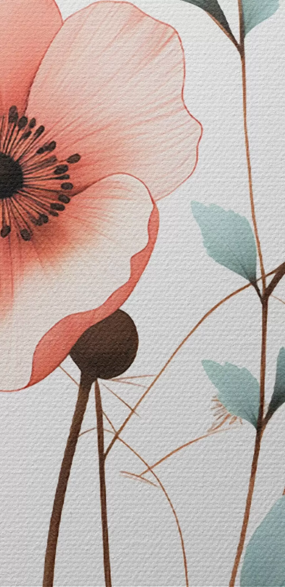 Trois types de matériaux peuvent être commandés : Economic Canvas - matériau dense et durable pour l'impression numérique, identique à la toile de peintre, surface imperméable, reproduction réaliste des détails, matériau à grain moyen. Premium Canvas - la texture ressemble à celle d'une toile de peintre (petits fils entrelacés). Reproduction douce et détaillée de l'image sur une surface mate. Eco-Premium - tissu 100 % coton de haute qualité. Grâce aux fibres naturelles de coton, le matériau est durable et résistant à l'usure. Excellente reproduction des couleurs et des détails.