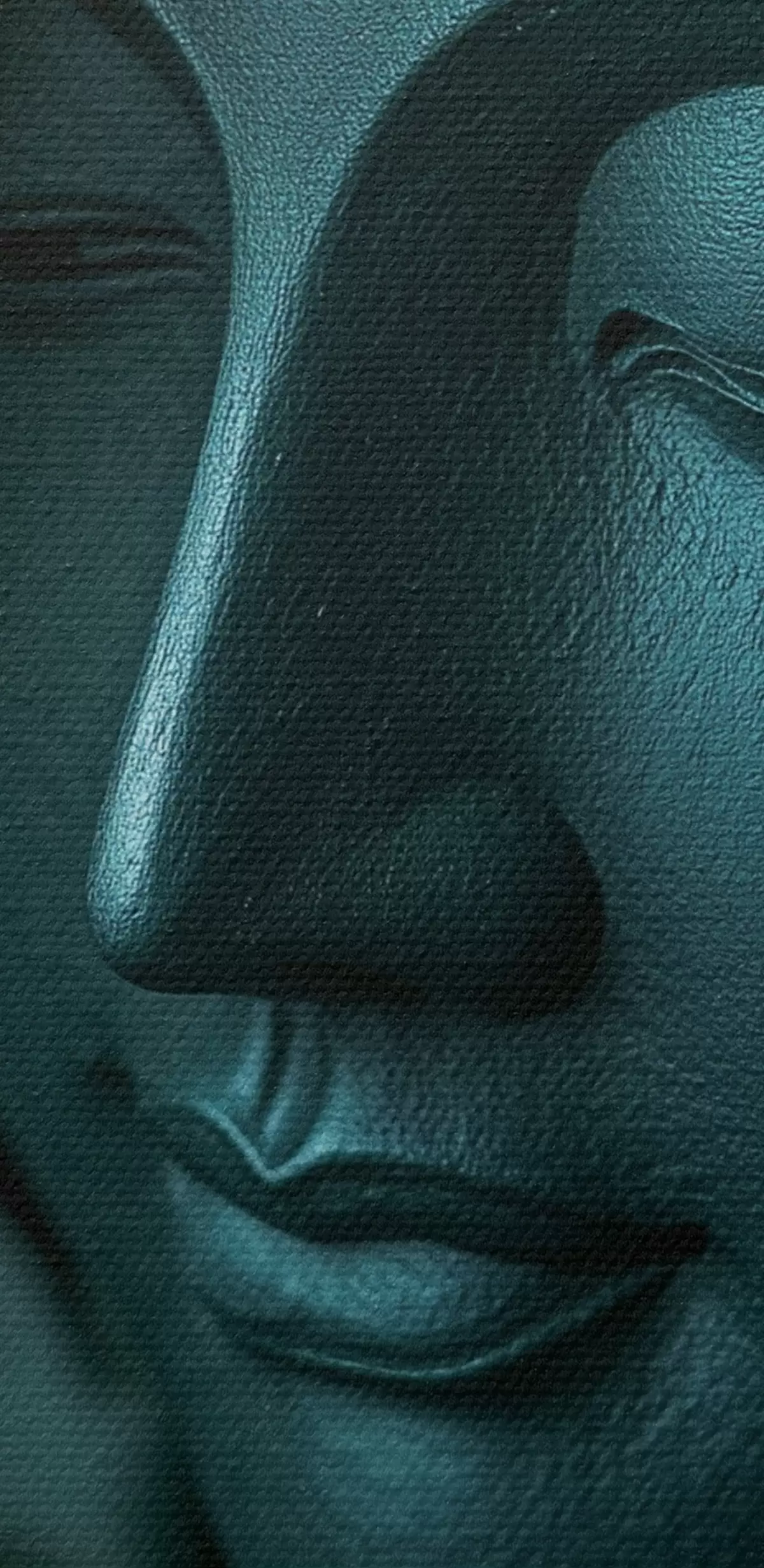 Tableau Bouddha dans les feuilles vertes, bouddhisme, tropical, réalisme Nr s44004