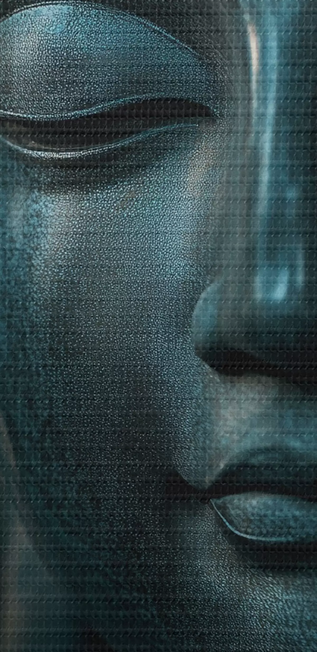 Tableau Bouddha vert dans des feuilles tropicales, réalisme Nr s44005