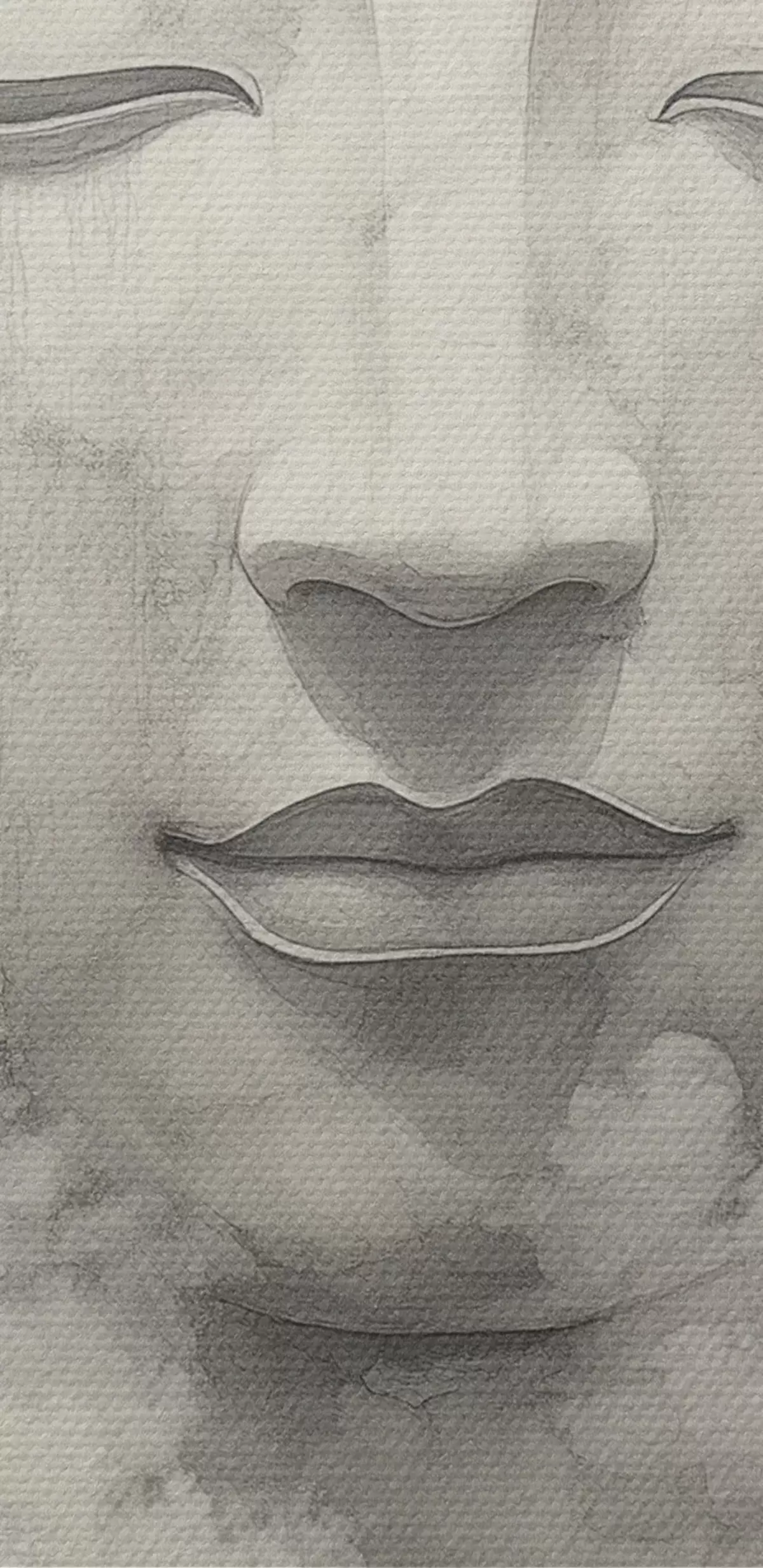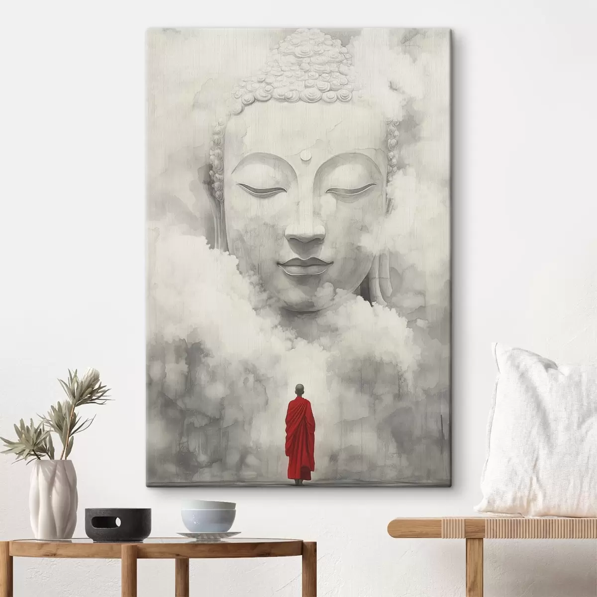 Tableau Bouddhisme, moine en robe rouge, brume, aquarelle Nr s44007