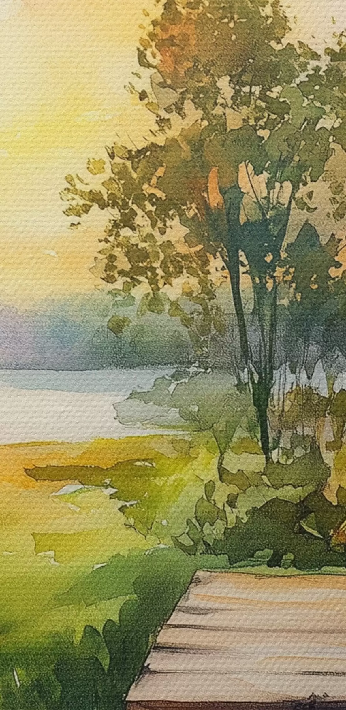 Tableau Couleurs du soleil couchant, ferme, style aquarelle, rustique, fleurs d'été Nr s44017