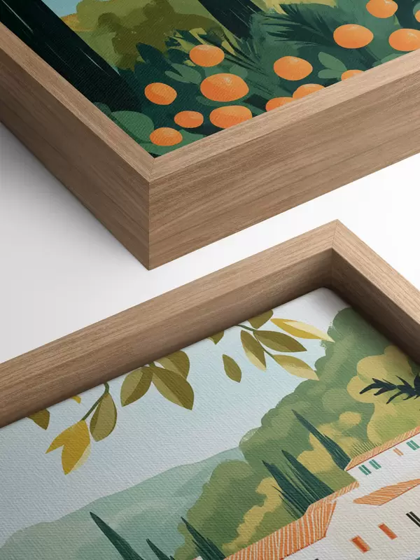 Tableau Paysages méditerranéens avec orangers et maisons, côte maritime s44027
