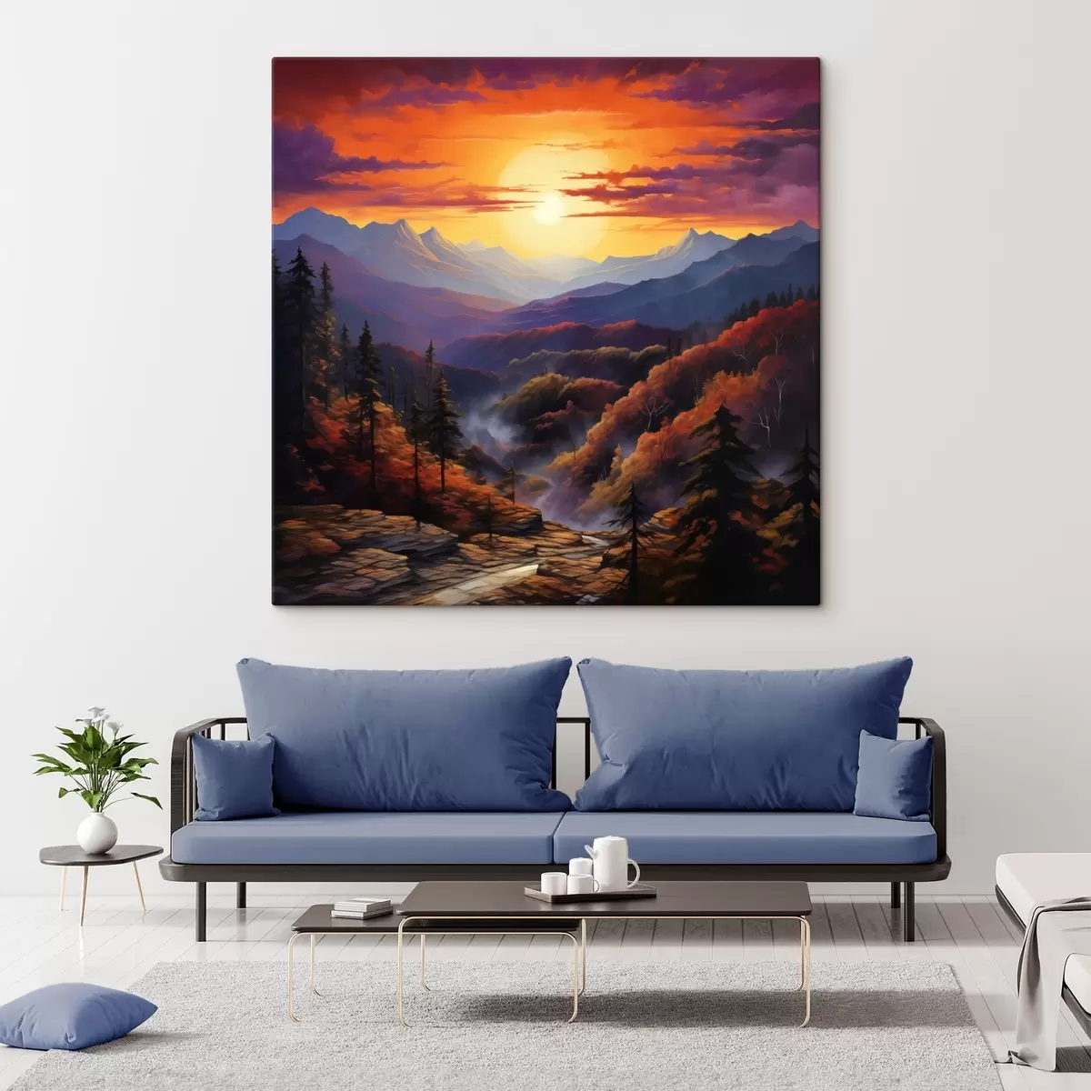 Tableau Forêt et montagnes au coucher du soleil Nr s44045