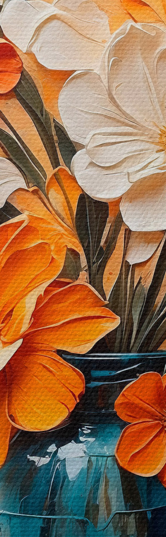 Tableau Fleurs blanches et orange dans un vase, peinture à l'huile Nr s44059