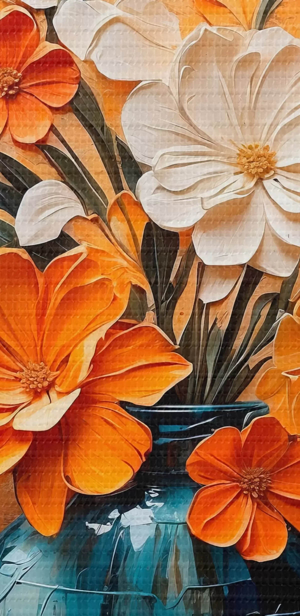 Tableau Fleurs blanches et orange dans un vase, peinture à l'huile s44059