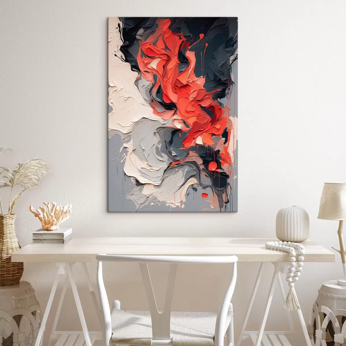 Tableau Peinture à l'huile abstraite en rouge, noir et gris s44079