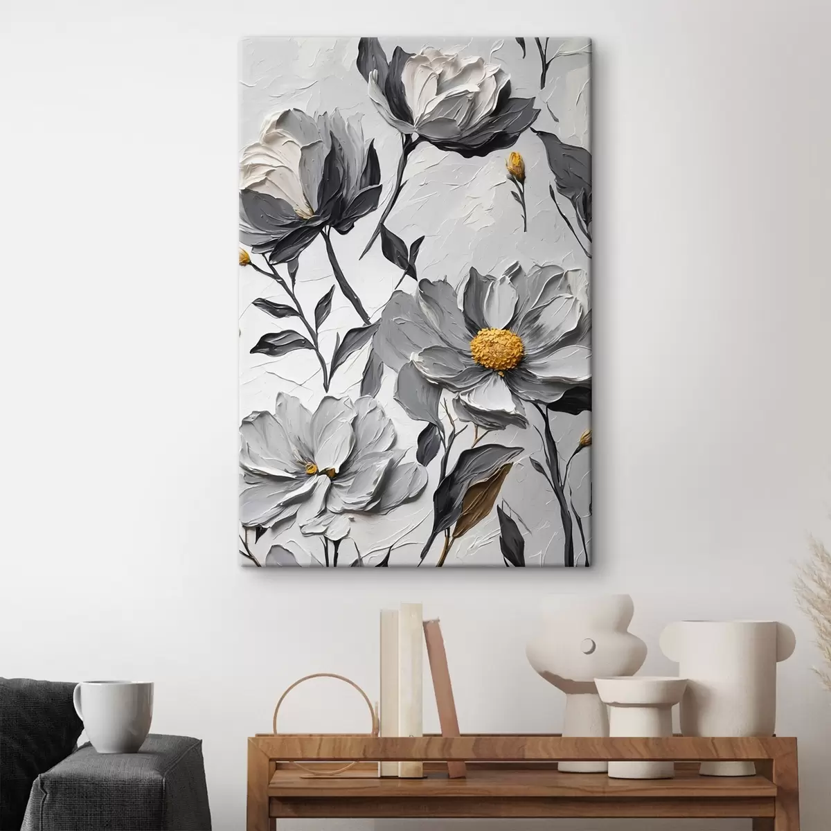 Tableau Fleurs grises sur fond gris dans le style de la peinture à l'huile Nr s44080