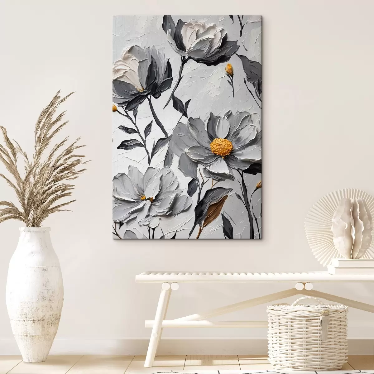 Tableau Fleurs grises sur fond gris dans le style de la peinture à l'huile s44080