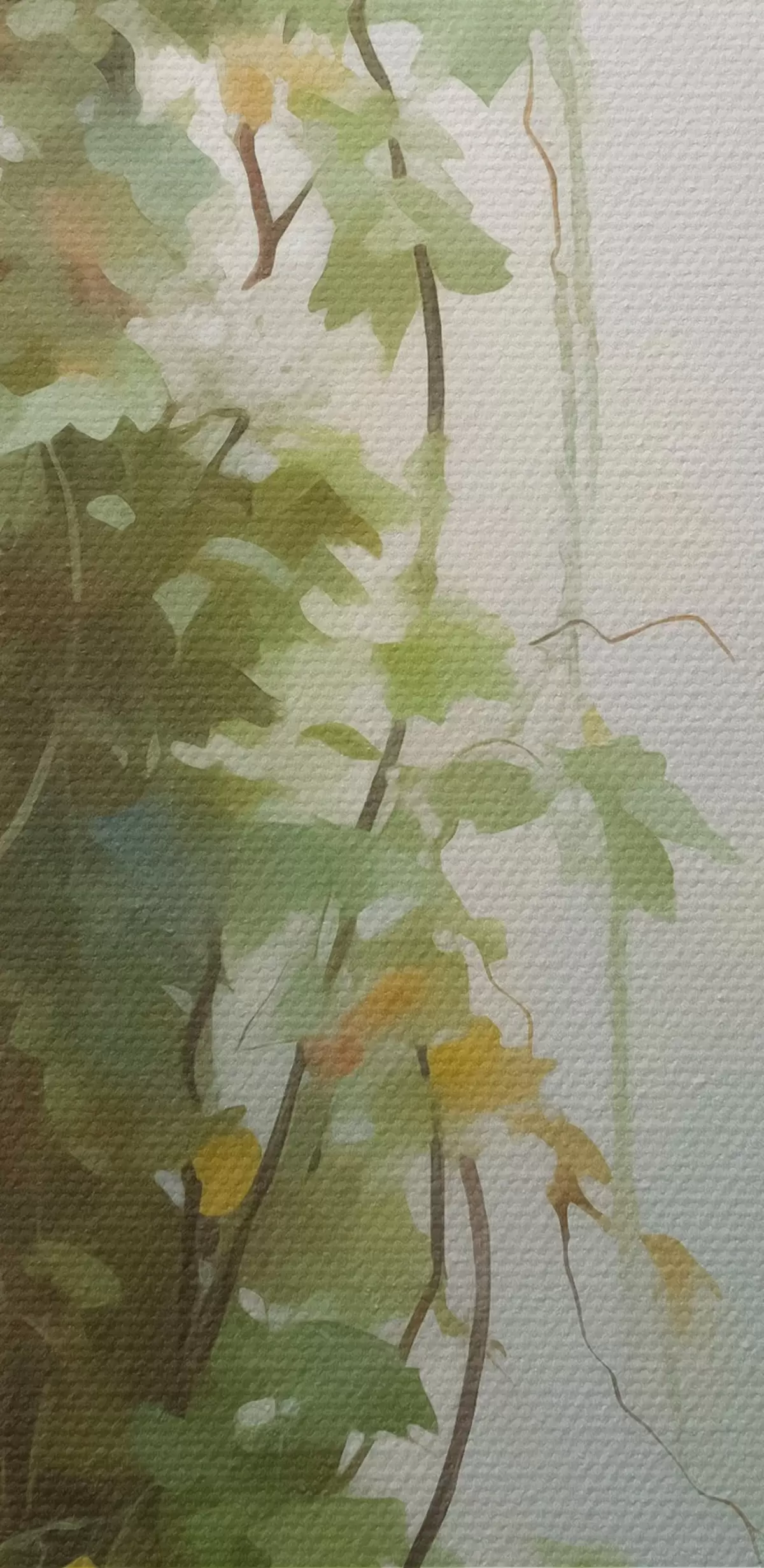 Le tableau peut être accroché immédiatement après réception. Le tableau est tendu sur un châssis en bois de 2 cm de large.
