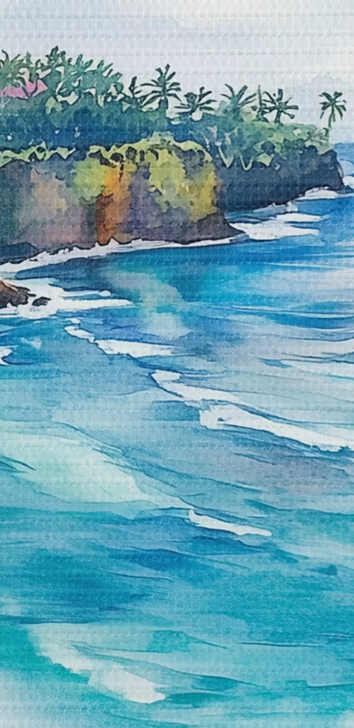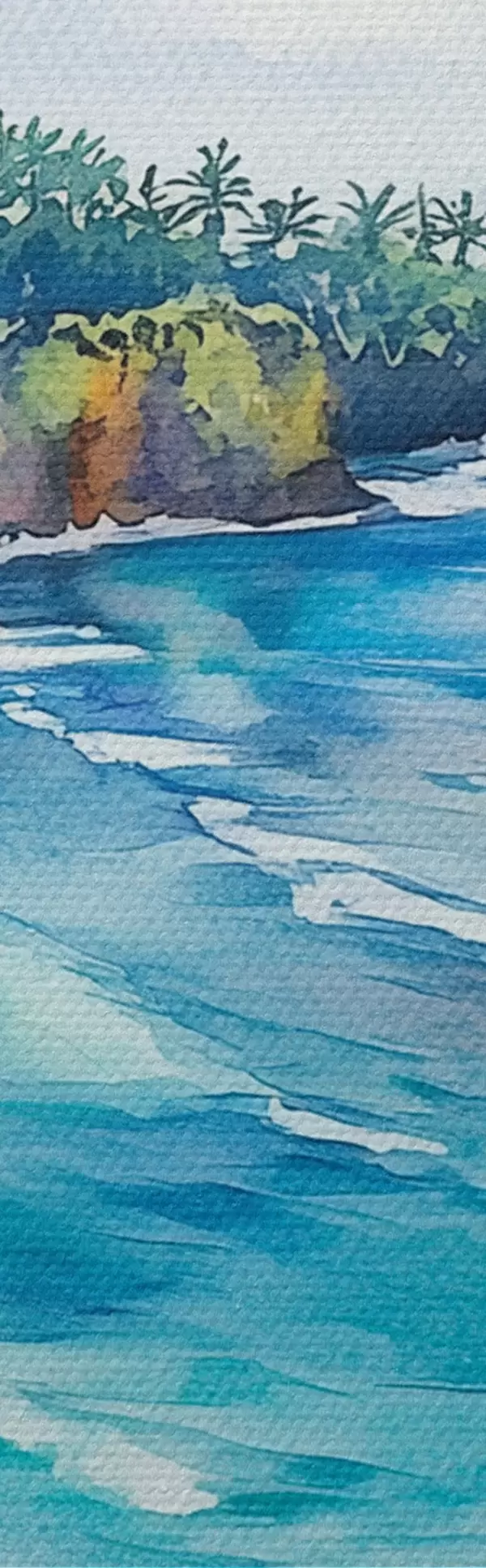 Tableau Plage tropicale, palmiers, fleurs, style aquarelle Nr s44145