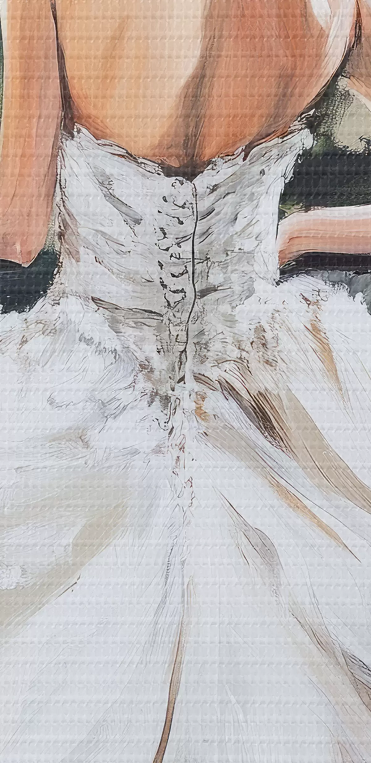 Trois types de matériaux peuvent être commandés : Economic Canvas - matériau dense et durable pour l'impression numérique, identique à la toile de peintre, surface imperméable, reproduction réaliste des détails, matériau à grain moyen. Premium Canvas - la texture ressemble à celle d'une toile de peintre (petits fils entrelacés). Reproduction douce et détaillée de l'image sur une surface mate. Eco-Premium - tissu 100 % coton de haute qualité. Grâce aux fibres naturelles de coton, le matériau est durable et résistant à l'usure. Excellente reproduction des couleurs et des détails.