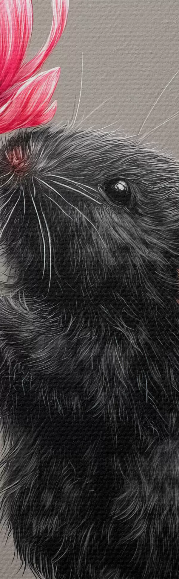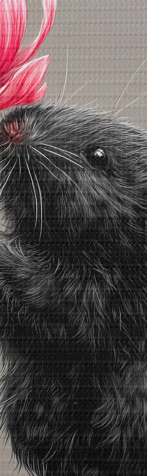 Tableau Charmante souris respirant l'arôme d'une pivoine rose Nr s44248