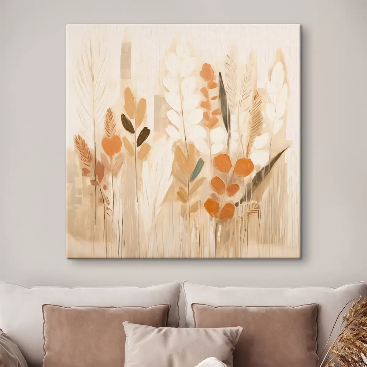 Tableau Abstraction chaleureuse avec des herbes et des fleurs dans une palette beige-orange dans le style Art nouveau Nr s44252
