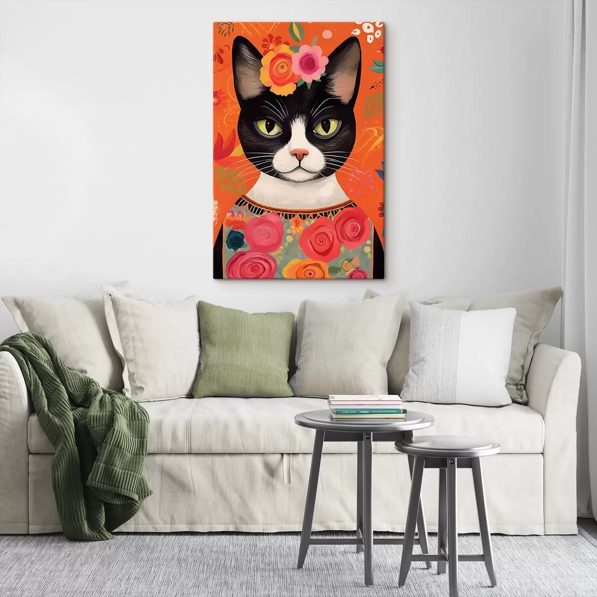 Tableau Chat dans un motif floral s44262