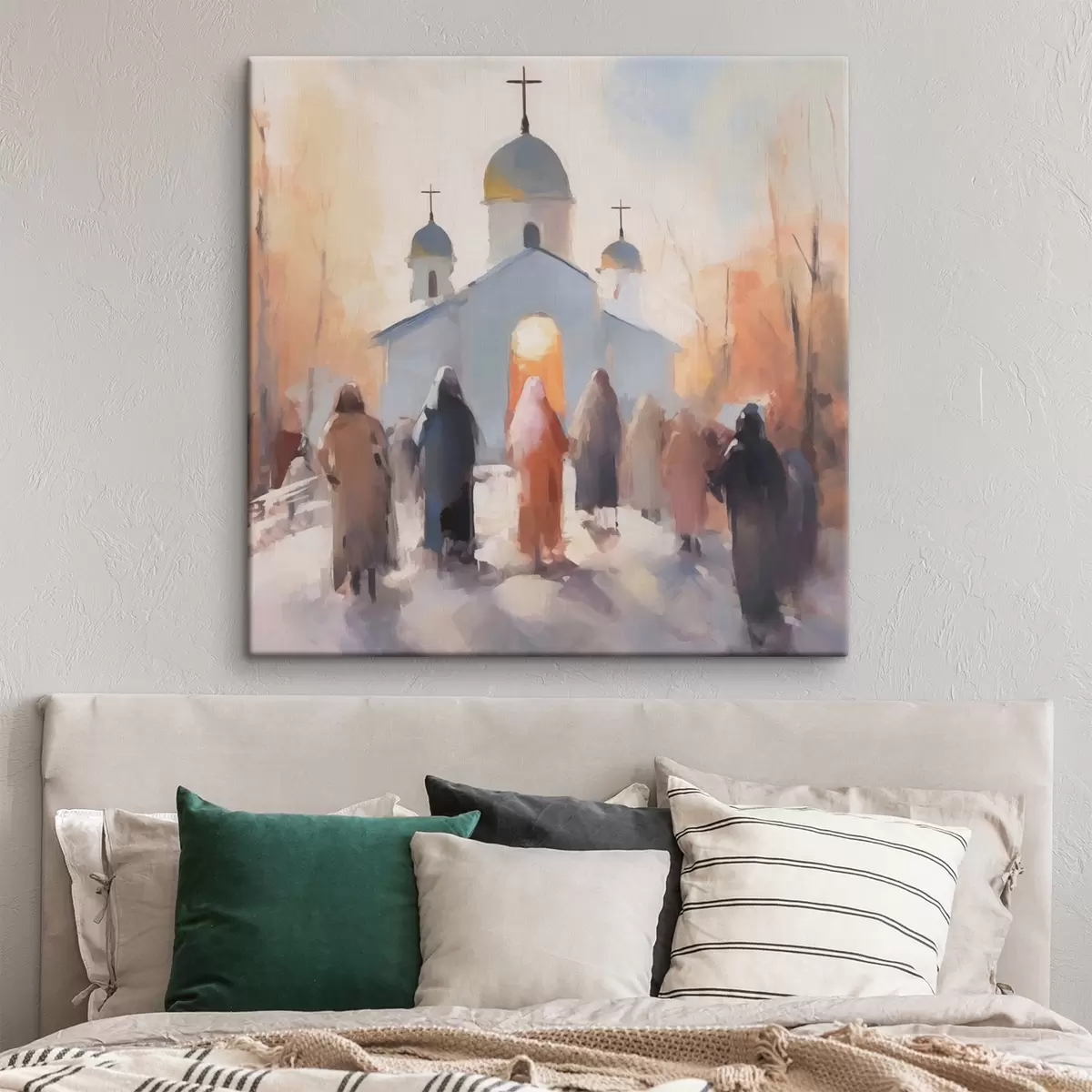 Trois types de matériaux peuvent être commandés : Economic Canvas - matériau dense et durable pour l'impression numérique, identique à la toile de peintre, surface imperméable, reproduction réaliste des détails, matériau à grain moyen. Premium Canvas - la texture ressemble à celle d'une toile de peintre (petits fils entrelacés). Reproduction douce et détaillée de l'image sur une surface mate. Eco-Premium - tissu 100 % coton de haute qualité. Grâce aux fibres naturelles de coton, le matériau est durable et résistant à l'usure. Excellente reproduction des couleurs et des détails.
