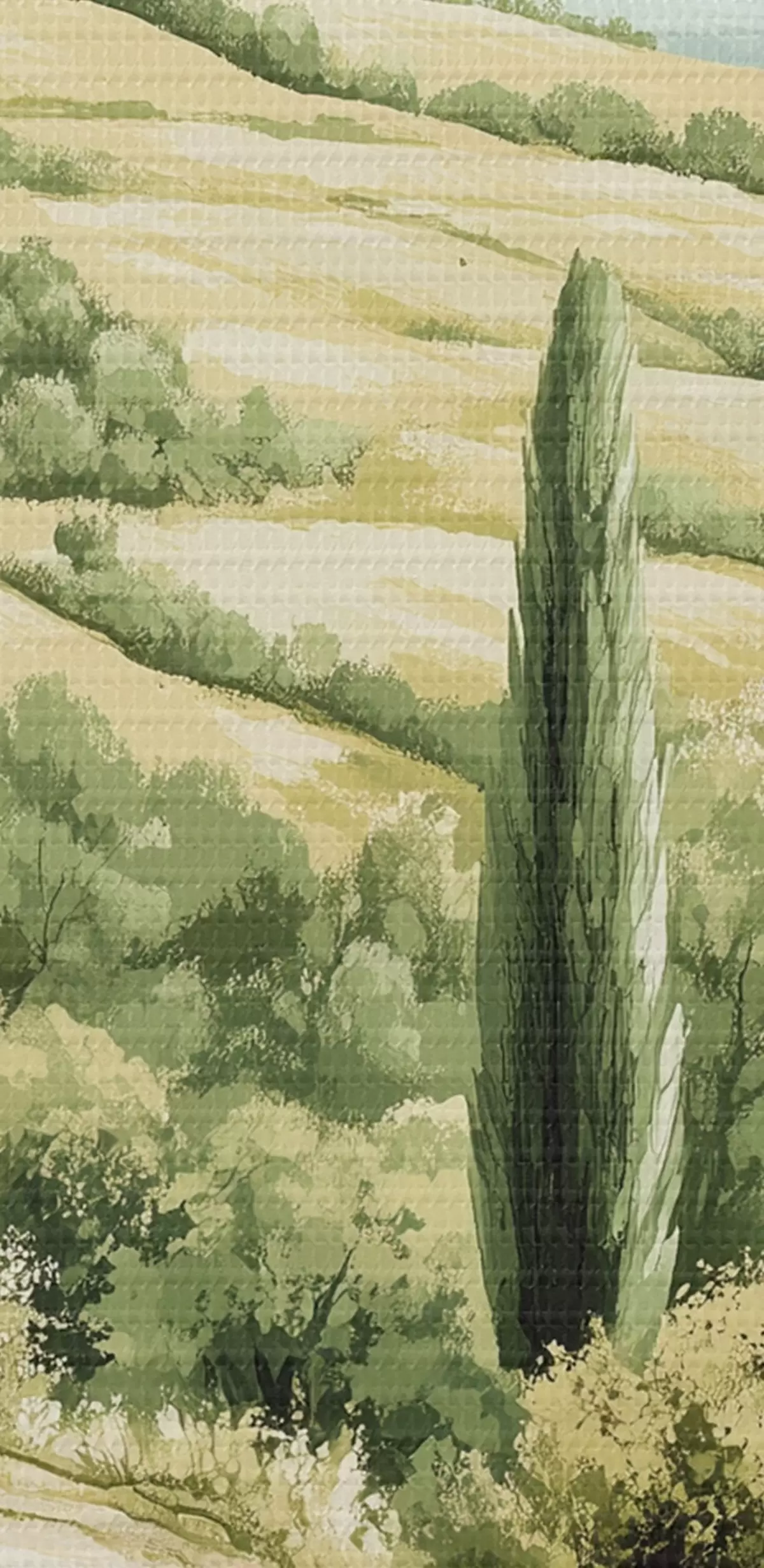 Tableau Paysages d'été avec cyprès et collines verdoyantes, style rustique s44308