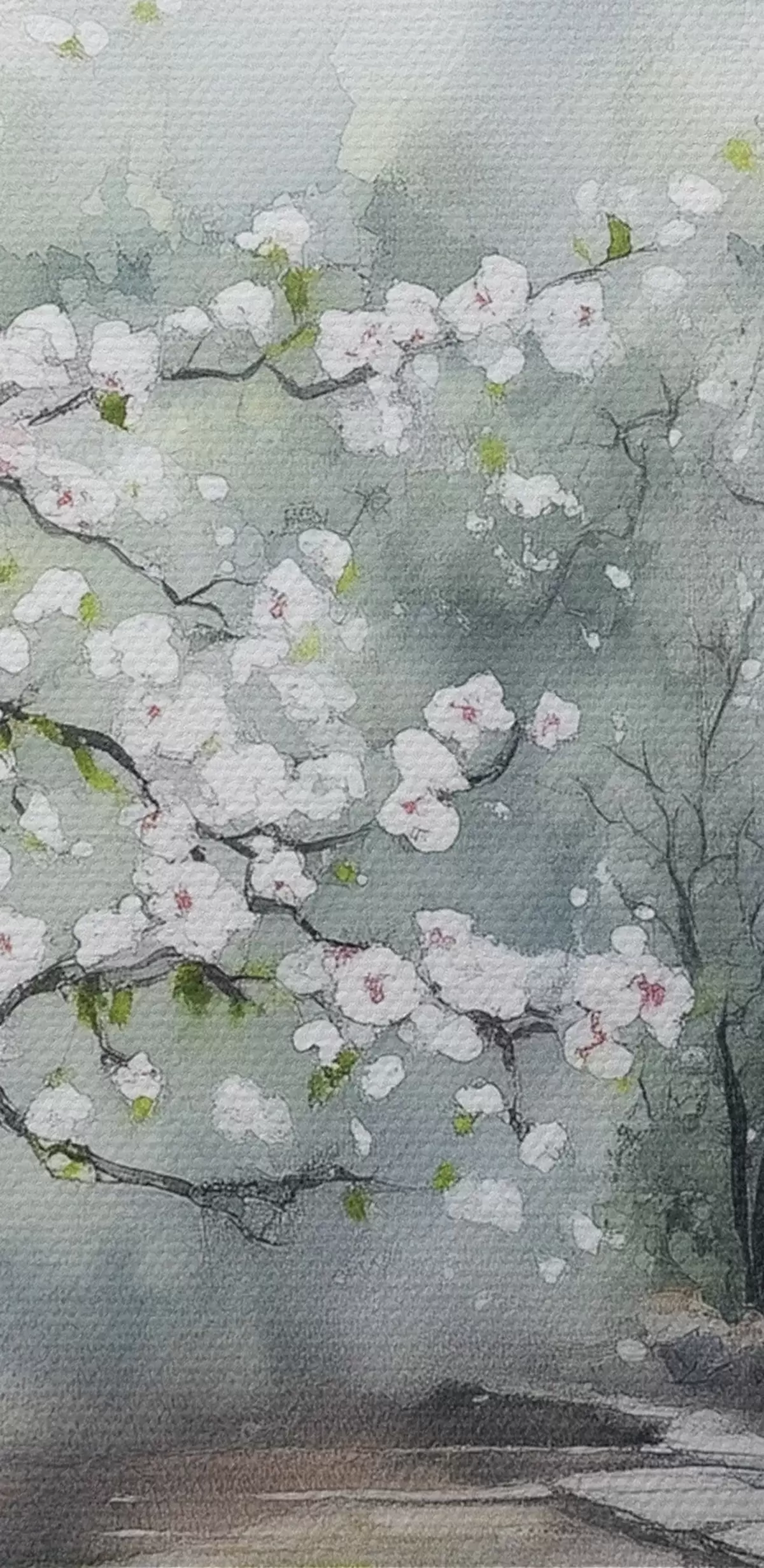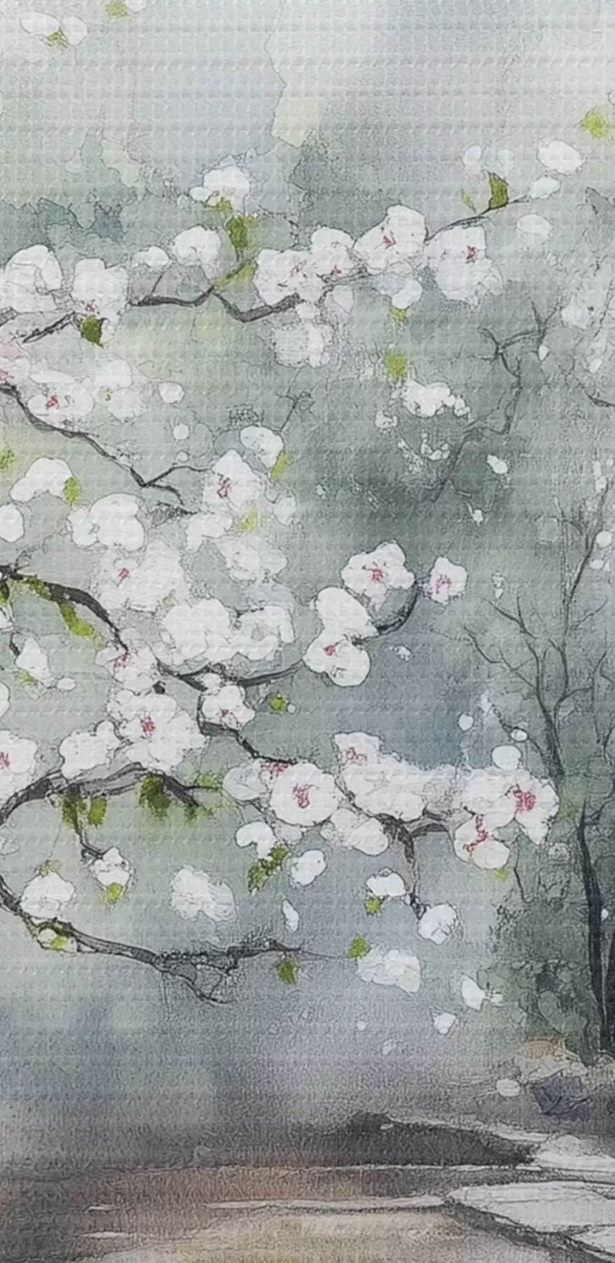 Tableau Jardin japonais avec cerisier et maison, oriental, style aquarelle s44309