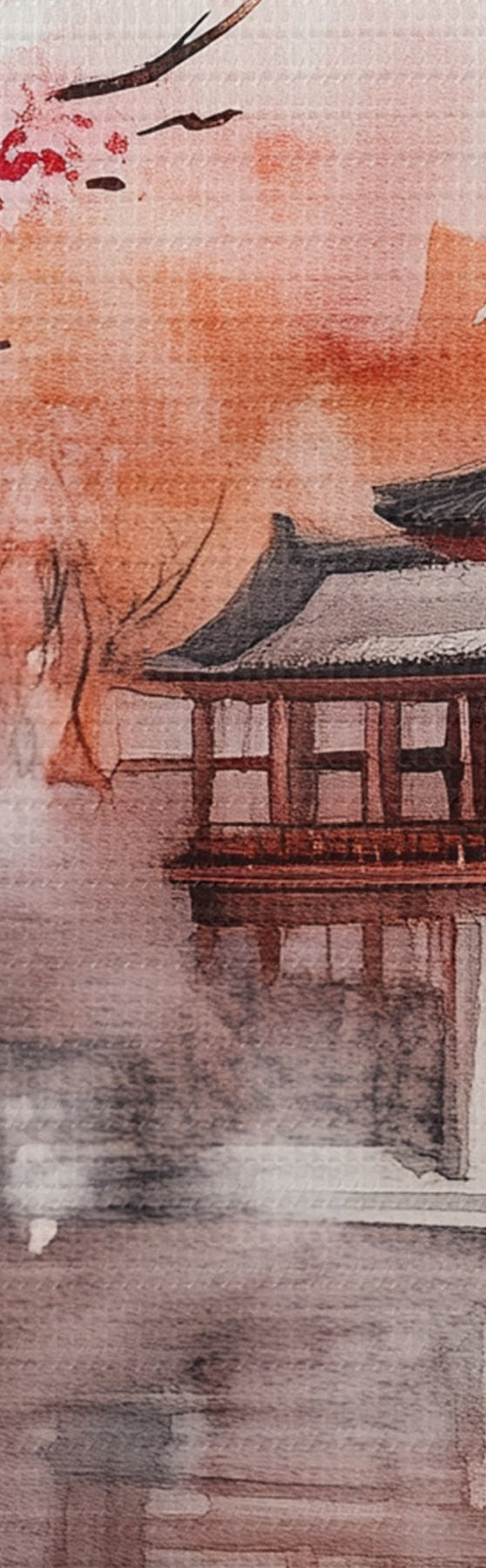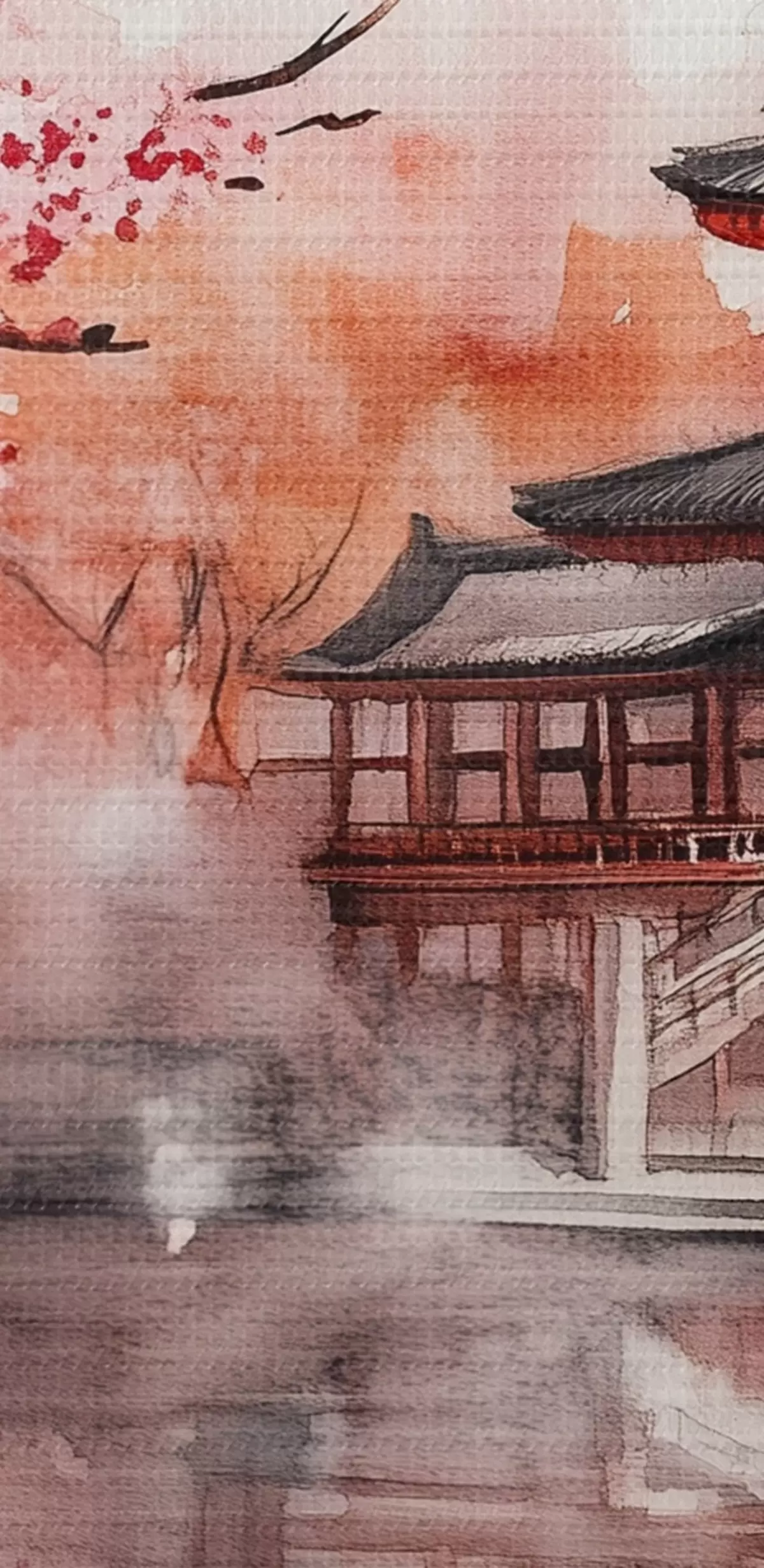 Tableau Magnifique paysage japonais avec cerisier en fleurs et maison sur le lac Nr s44310