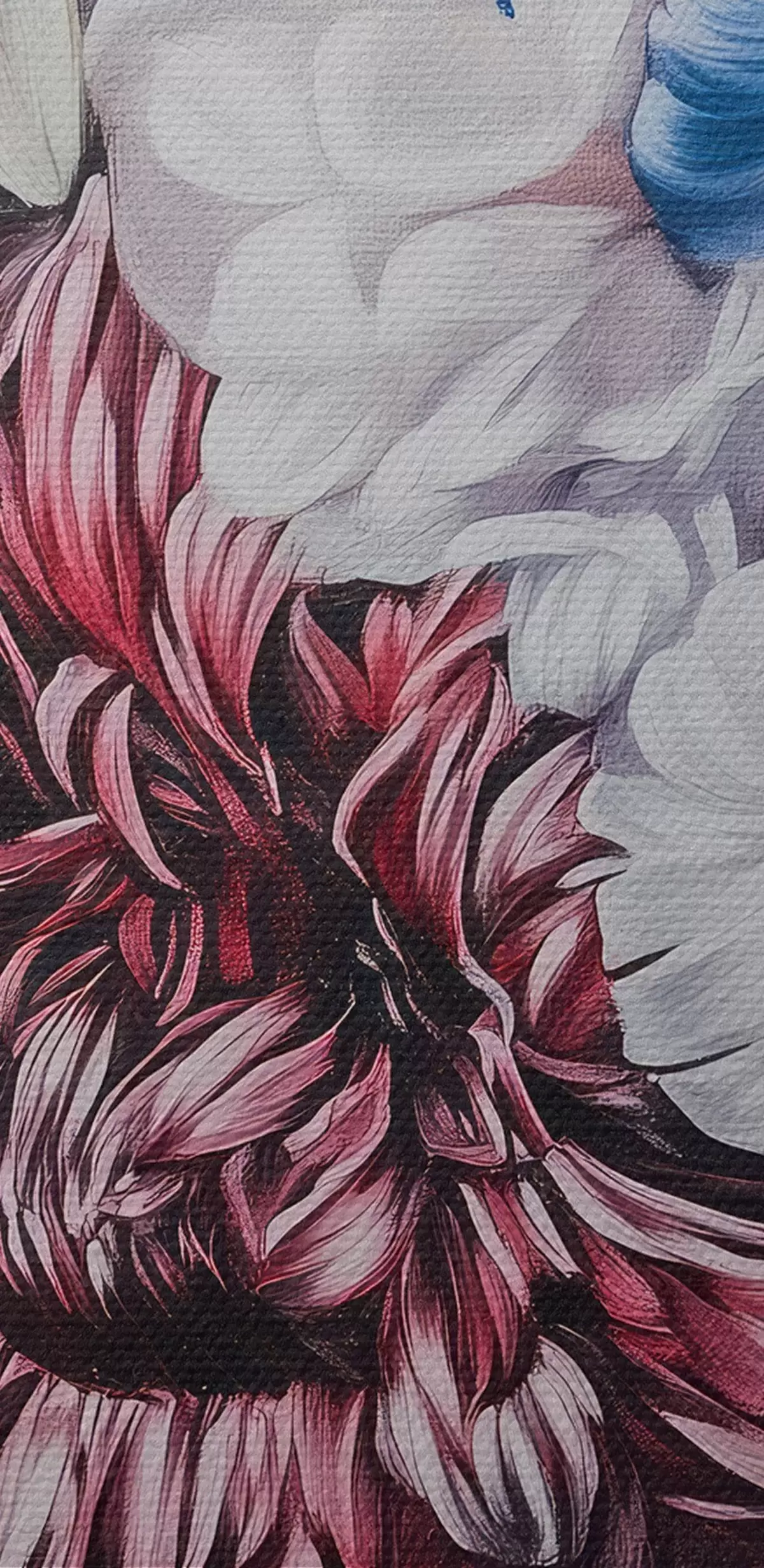 Trois types de matériaux peuvent être commandés : Economic Canvas - matériau dense et durable pour l'impression numérique, identique à la toile de peintre, surface imperméable, reproduction réaliste des détails, matériau à grain moyen. Premium Canvas - la texture ressemble à celle d'une toile de peintre (petits fils entrelacés). Reproduction douce et détaillée de l'image sur une surface mate. Eco-Premium - tissu 100 % coton de haute qualité. Grâce aux fibres naturelles de coton, le matériau est durable et résistant à l'usure. Excellente reproduction des couleurs et des détails.