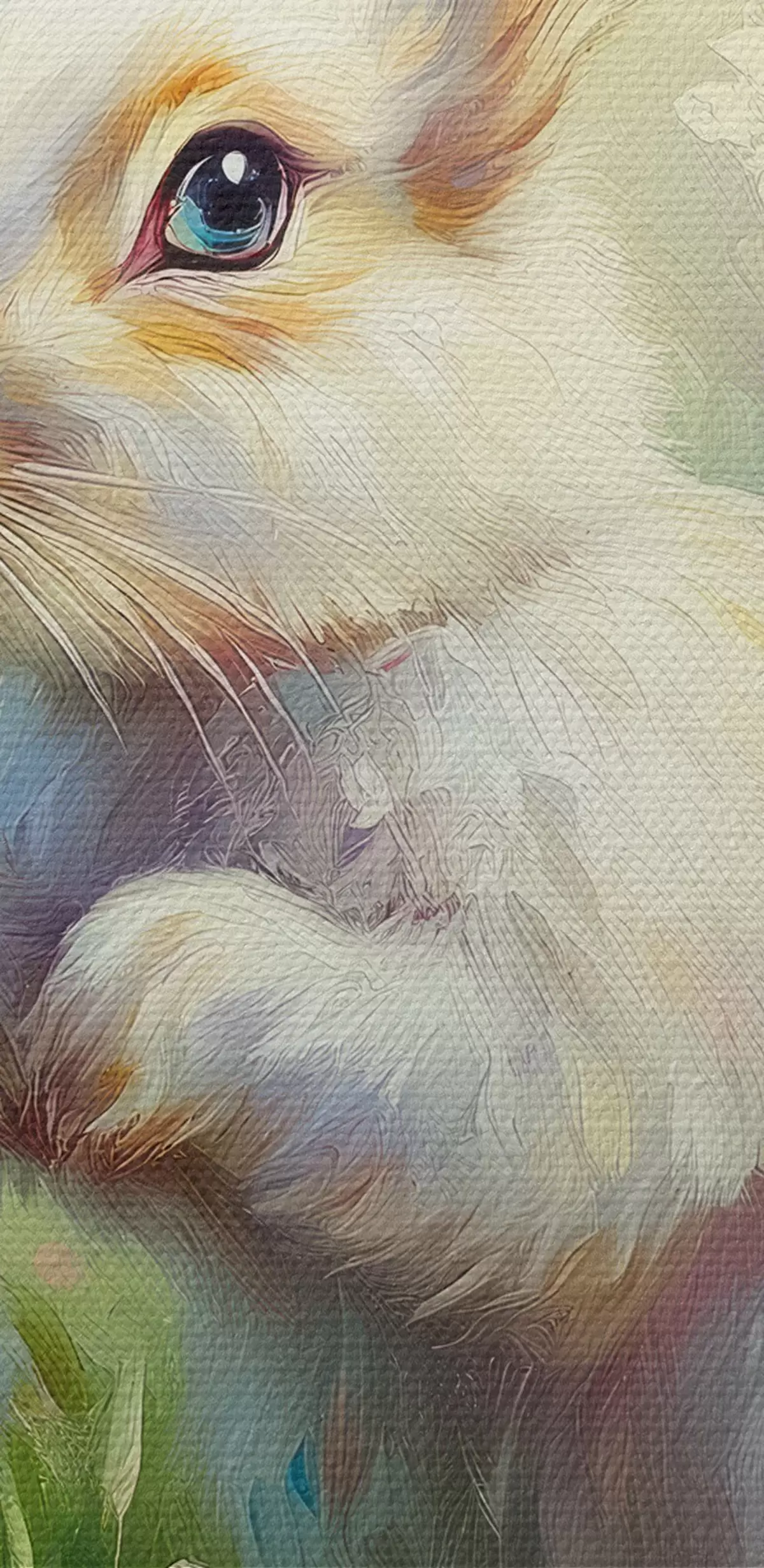 Tableau Lapin blanc parmi les fleurs Nr s44326