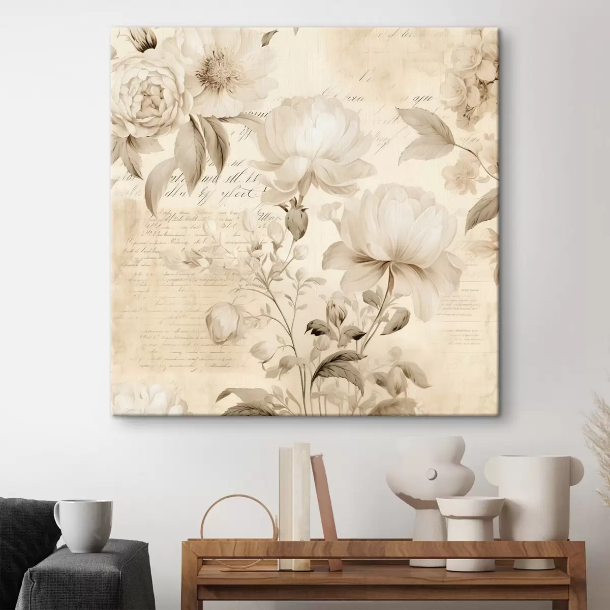 Tableau Composition vintage de fleurs blanc crème s44332