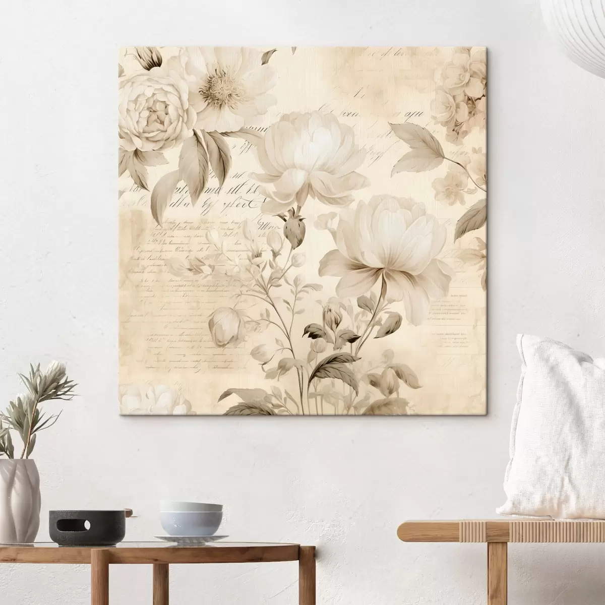 Tableau Composition vintage de fleurs blanc crème Nr s44332
