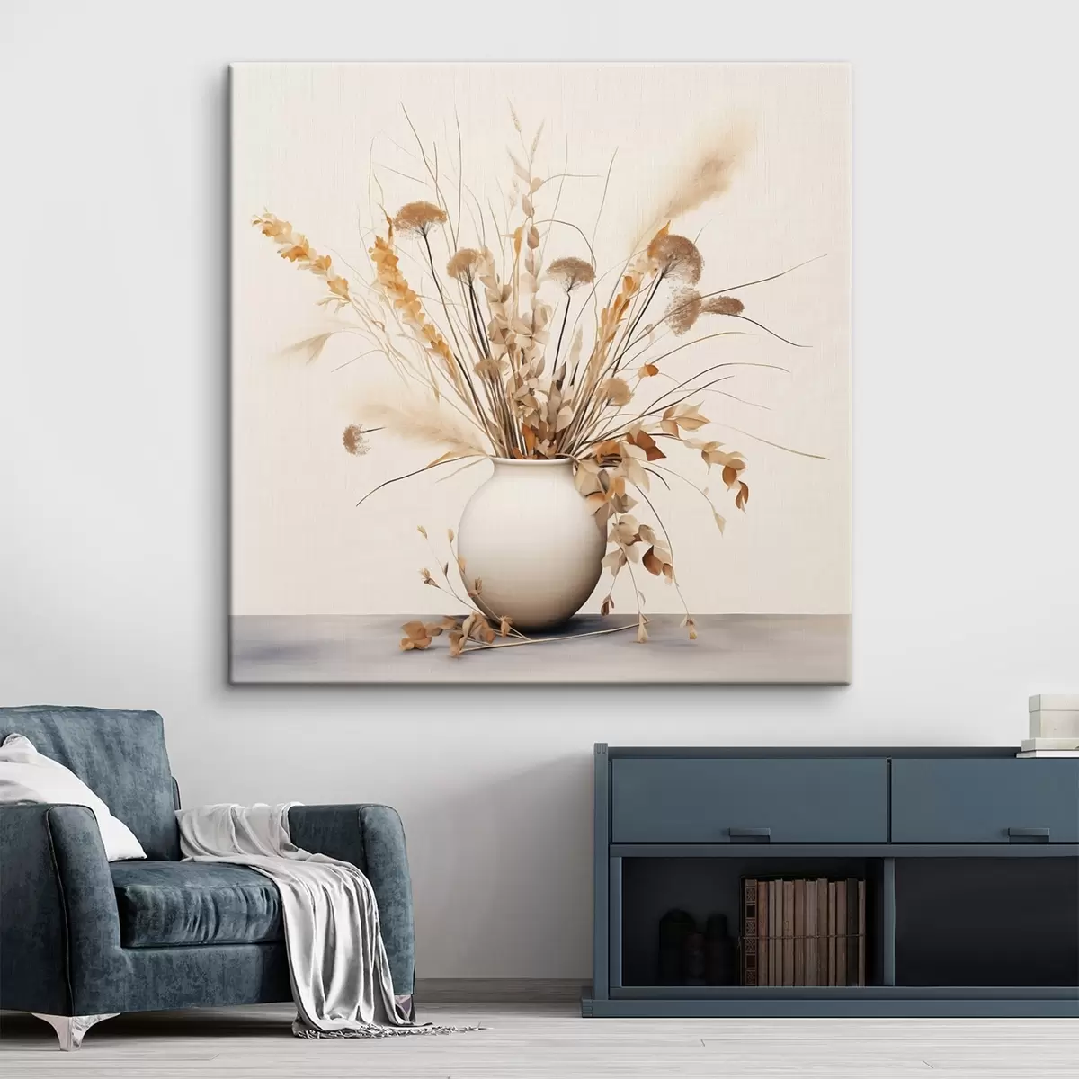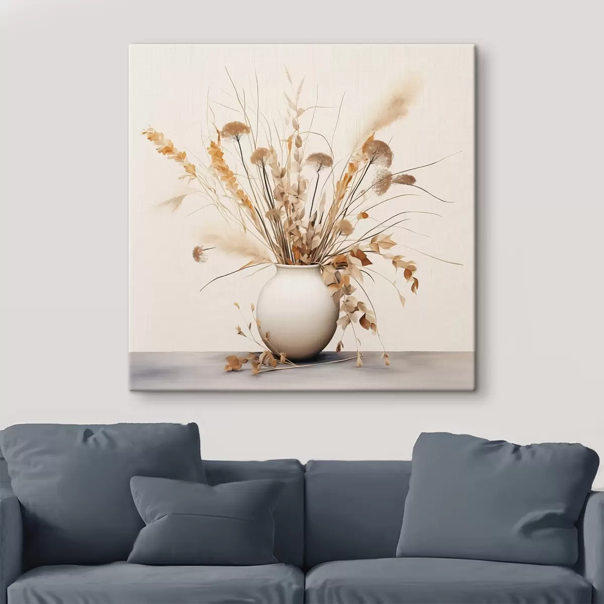 Tableau Arrangement d'herbes et de fleurs séchées dans un vase blanc Nr s44348