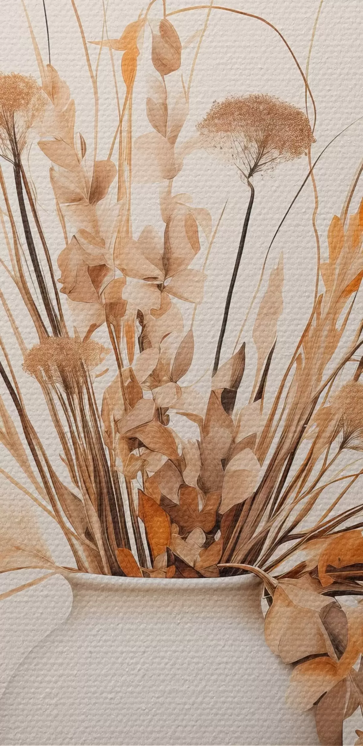 Tableau Arrangement d'herbes et de fleurs séchées dans un vase blanc Nr s44348
