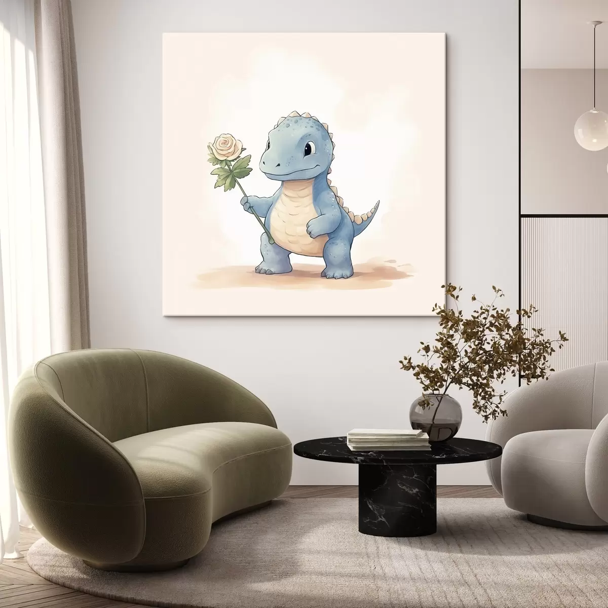 Tableau Petit dinosaure et fleur tendre Nr s44351